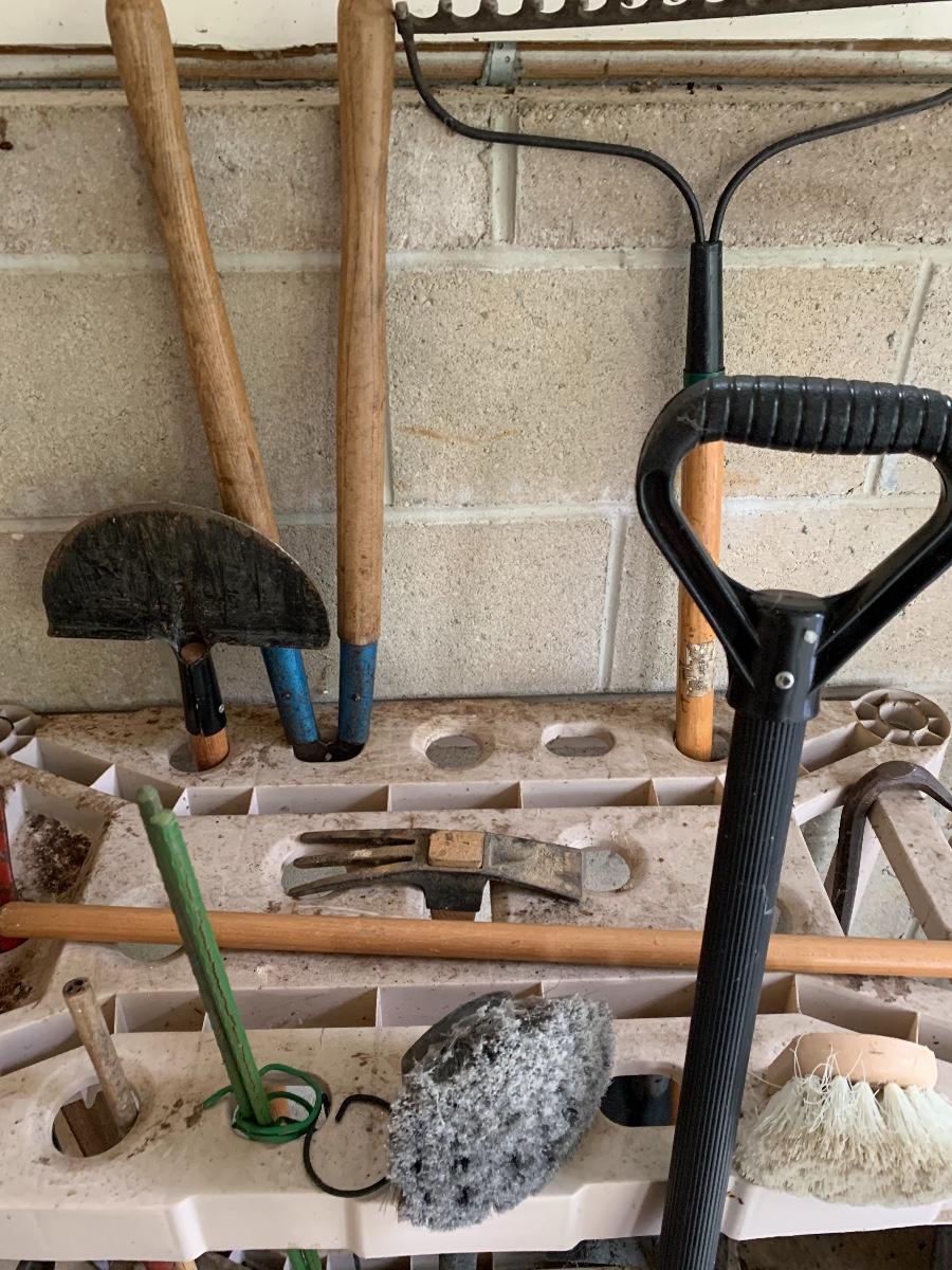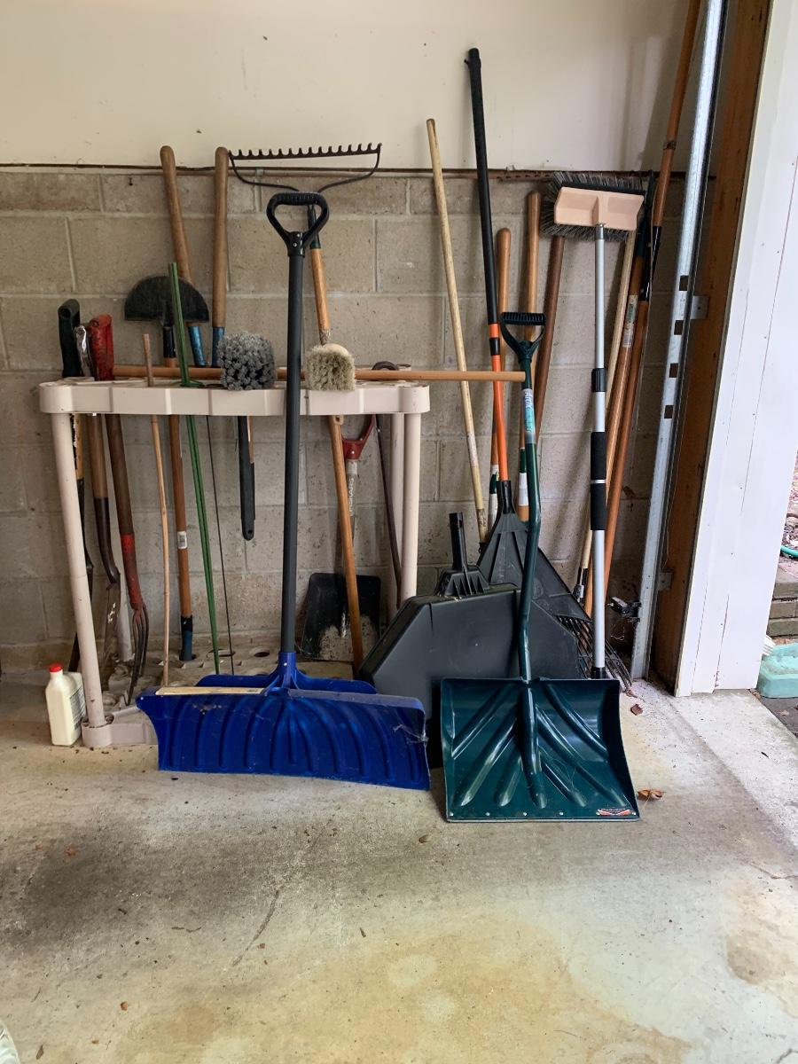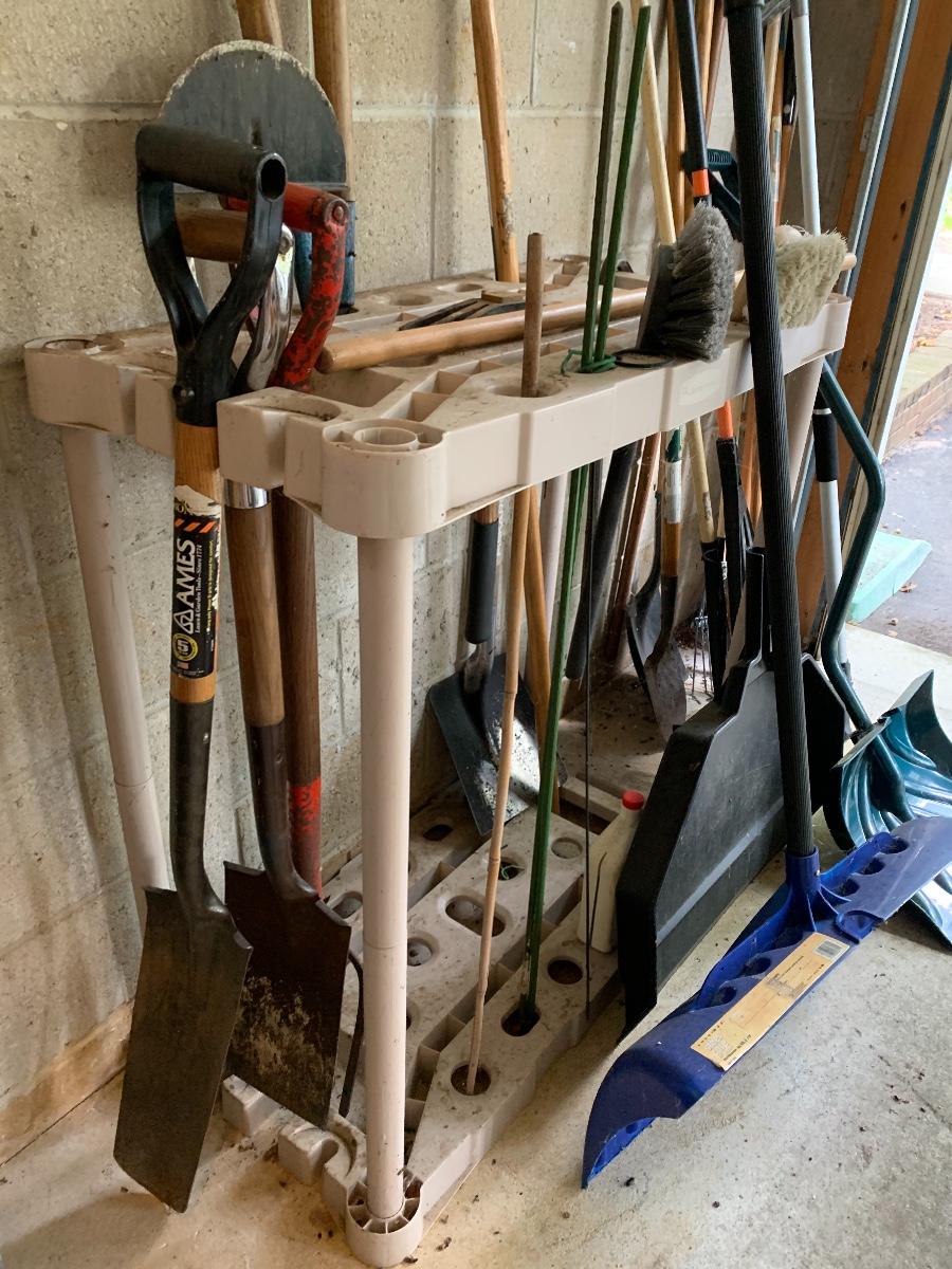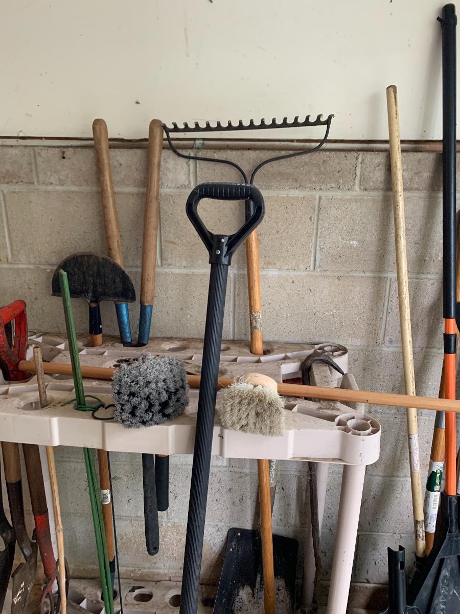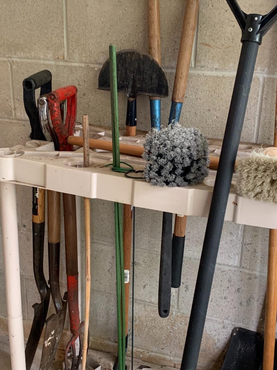 Misc. yard tools along with the tool holder to help keep them organized.