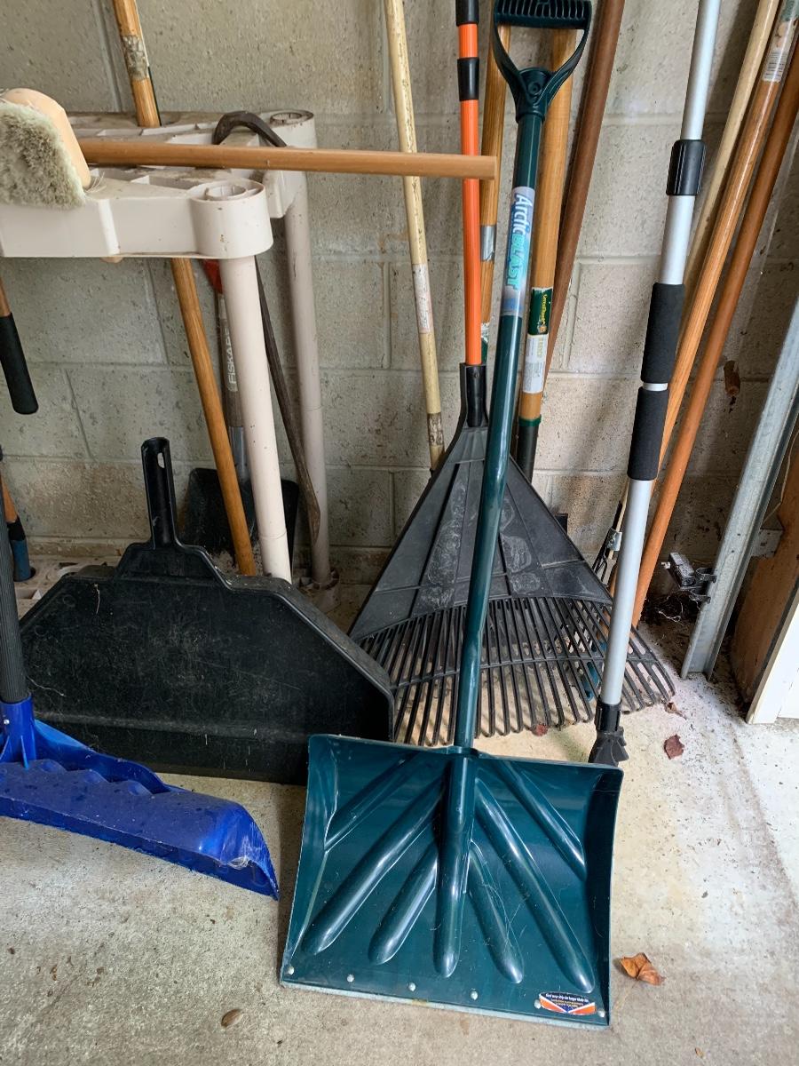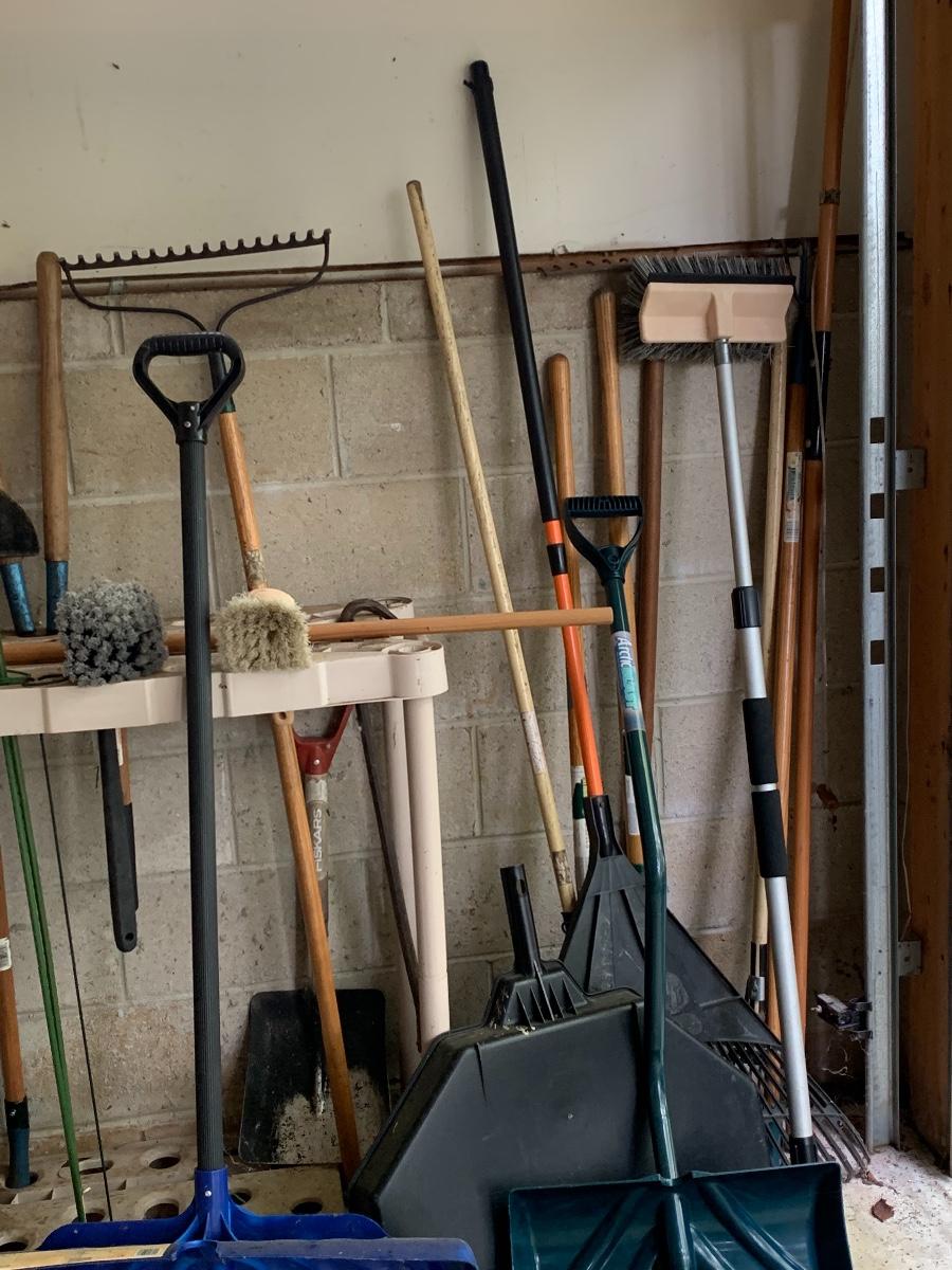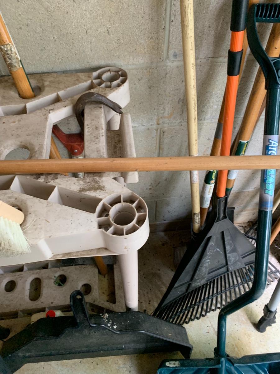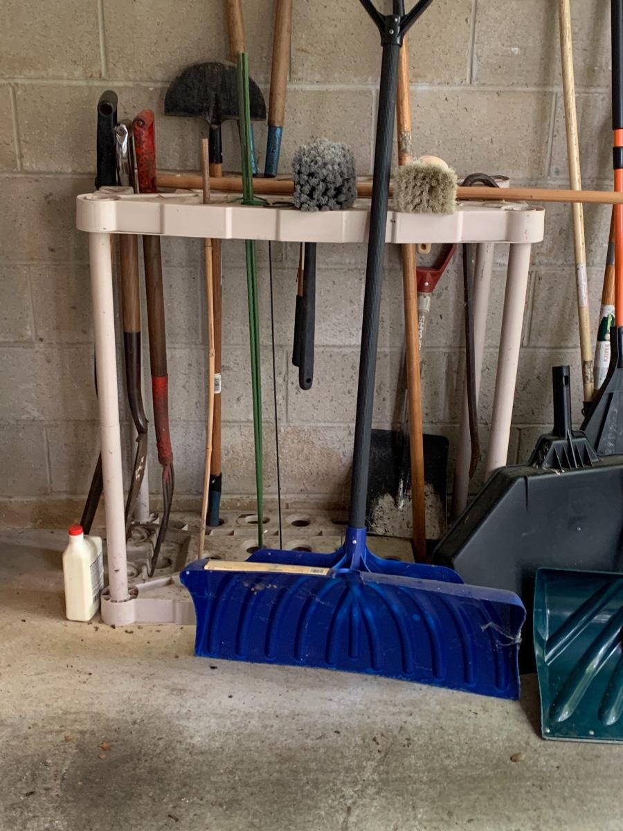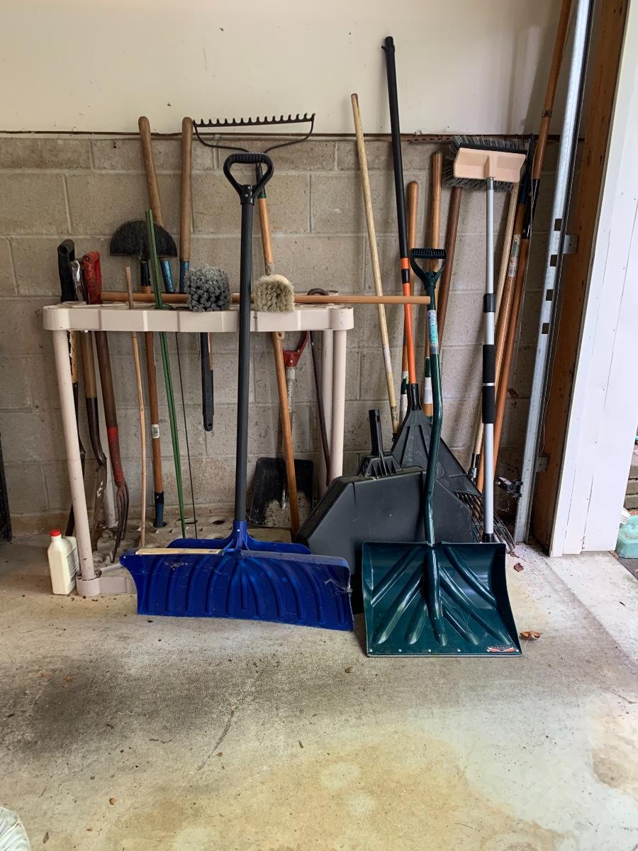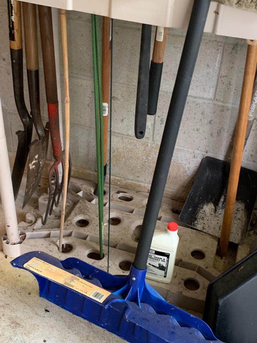 Misc. yard tools along with the tool holder to help keep them organized.