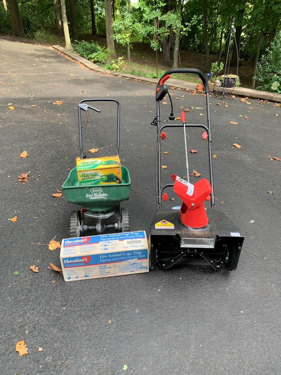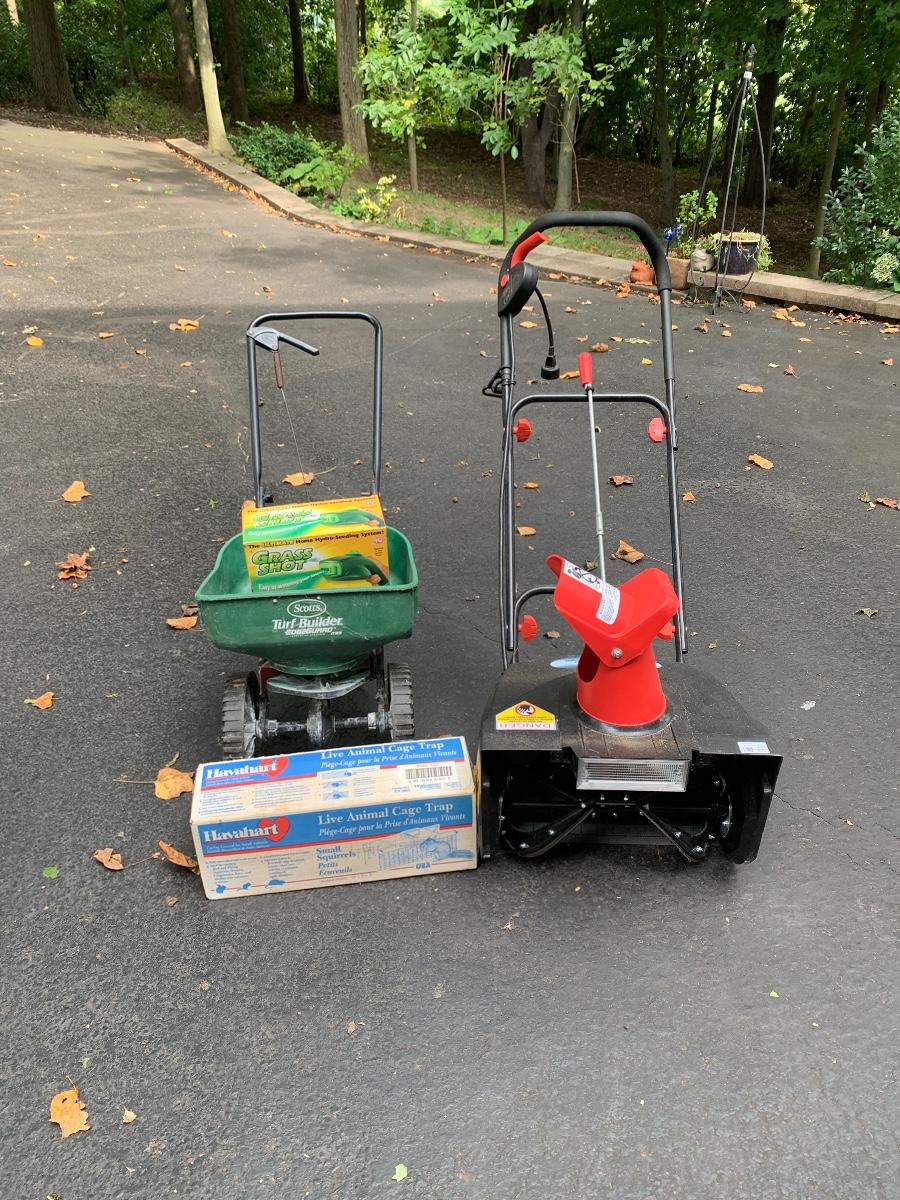 Lot 44: Scott Seed Spreader,  Snow Joe Max Snow Thrower & More