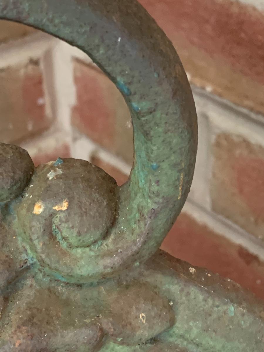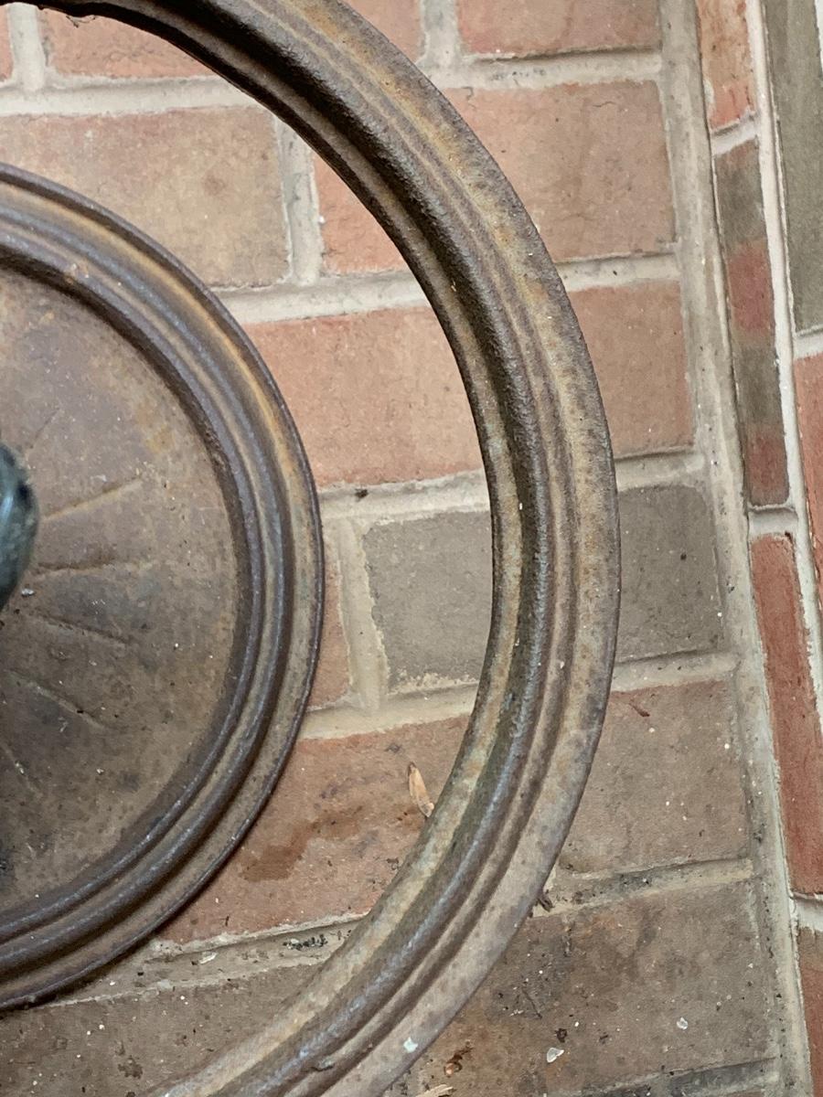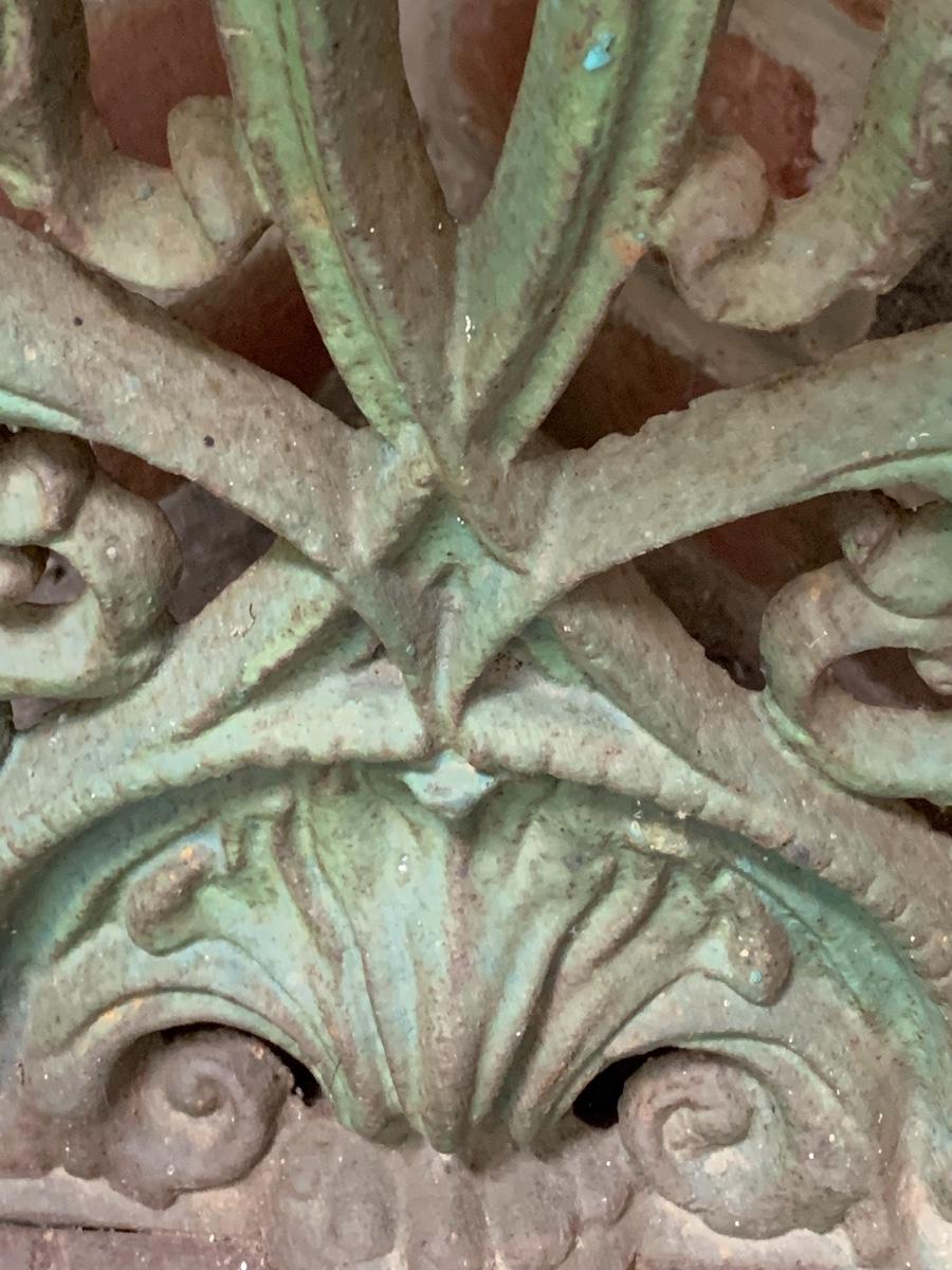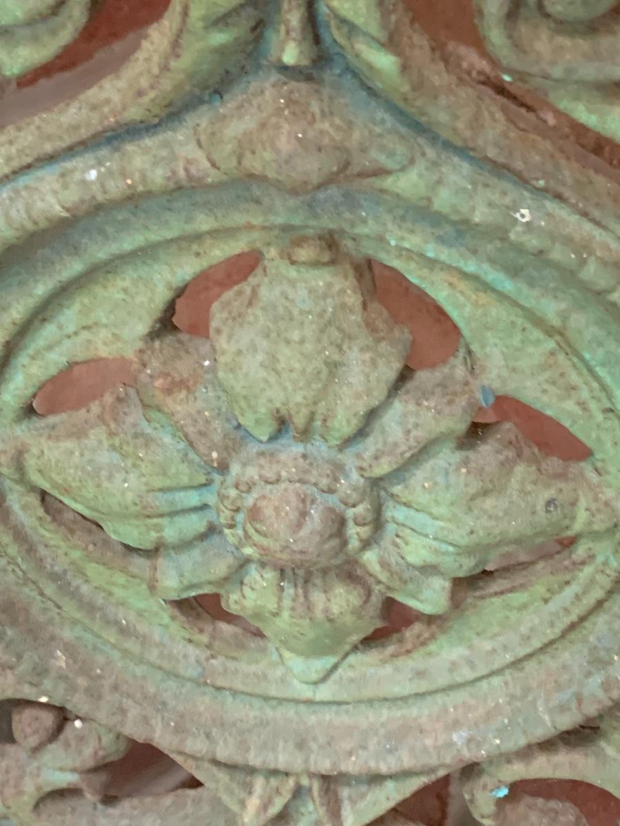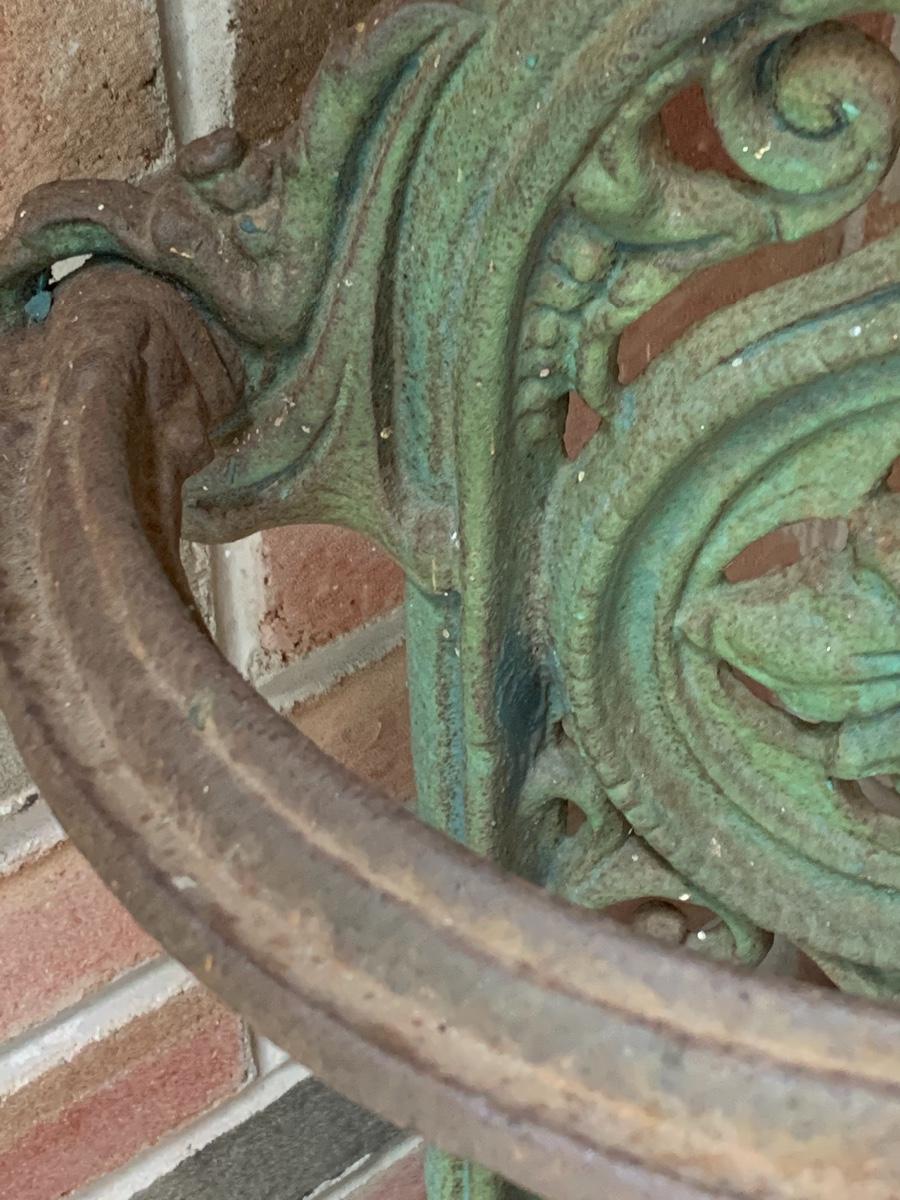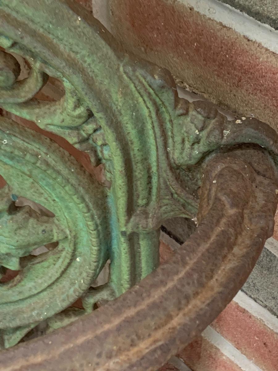 Beautiful ornate cast iron umbrella stand. This has been used on porch and has some rusting.