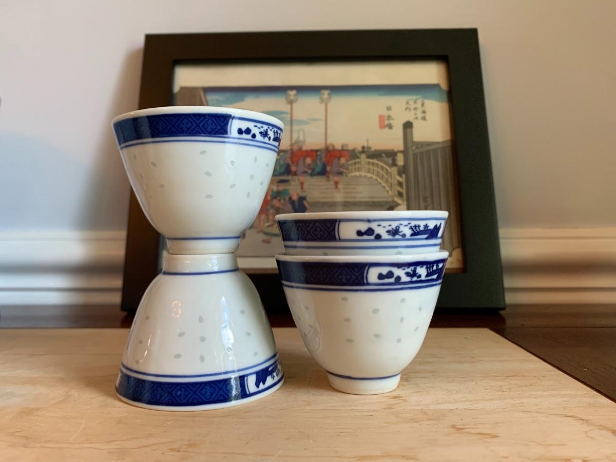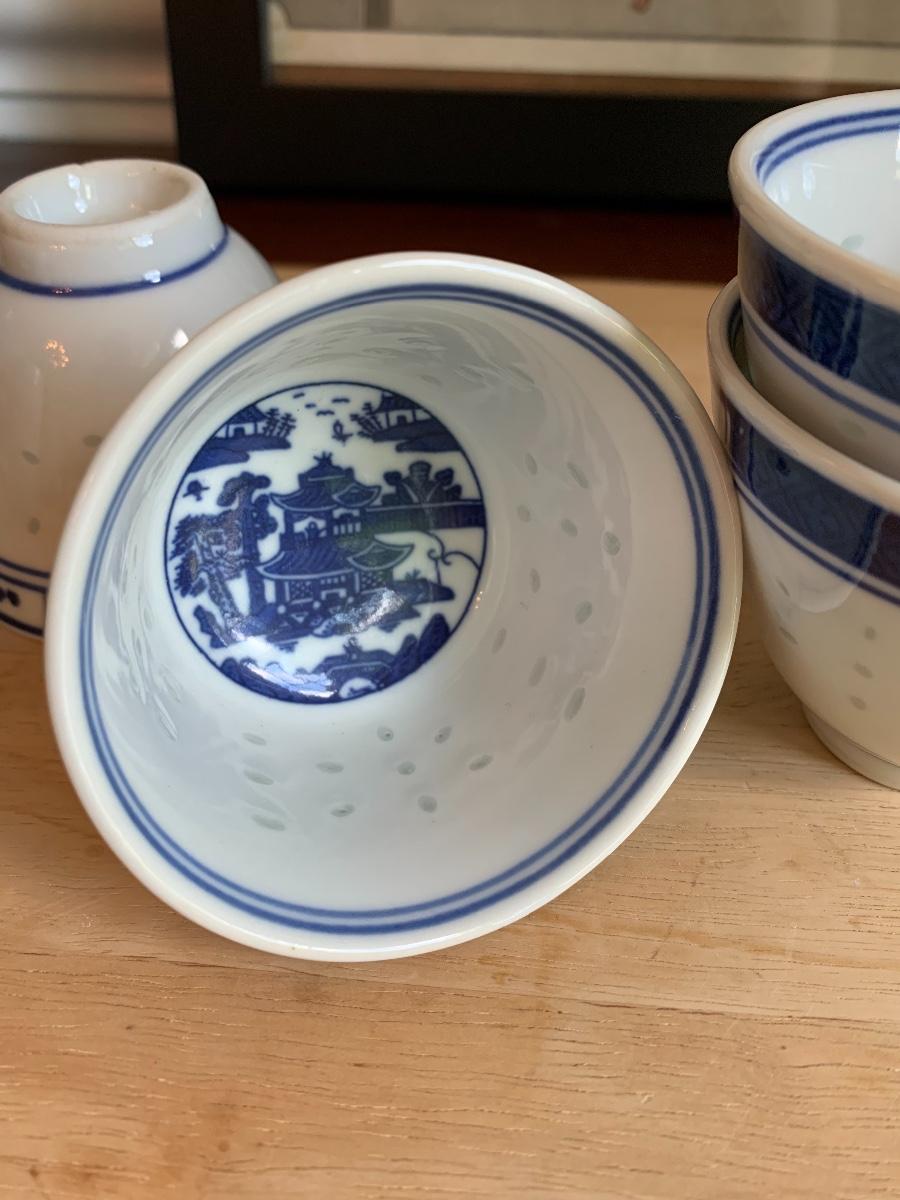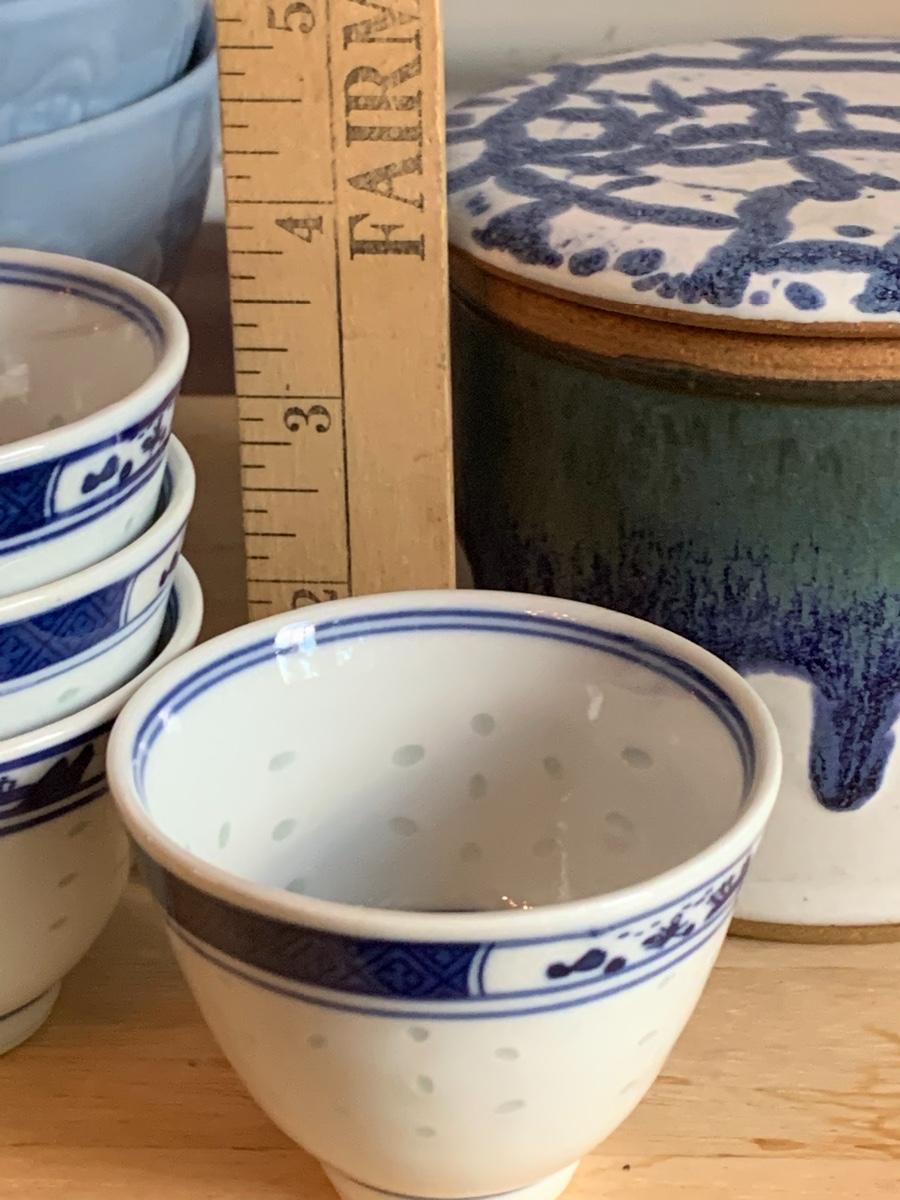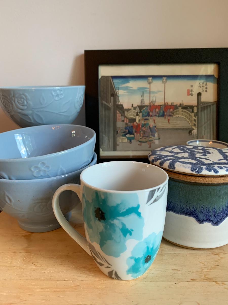 Eclectic lot of French butter dish, Oriental Market Print (12 x 10), bowls and more.