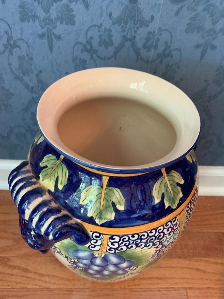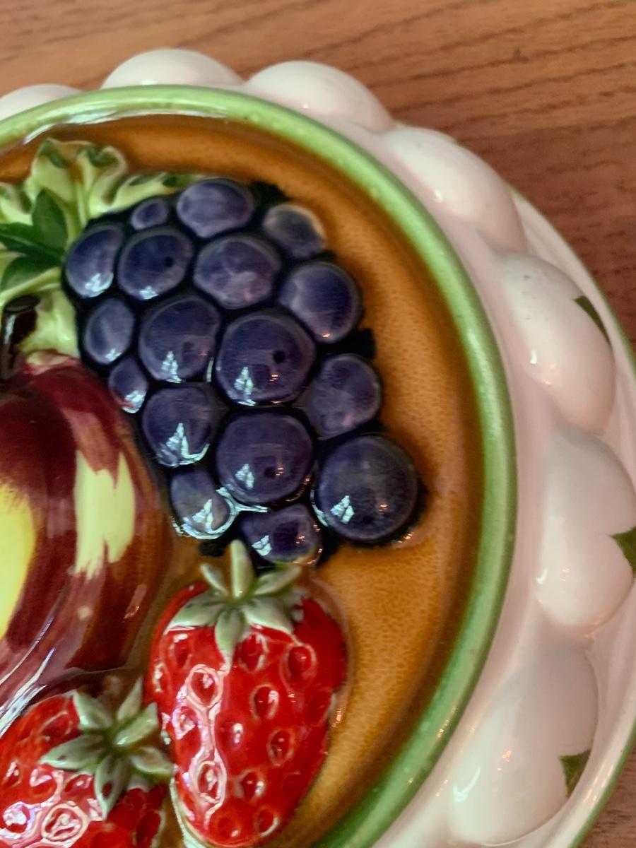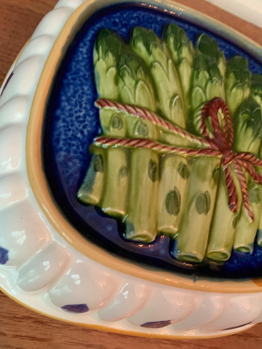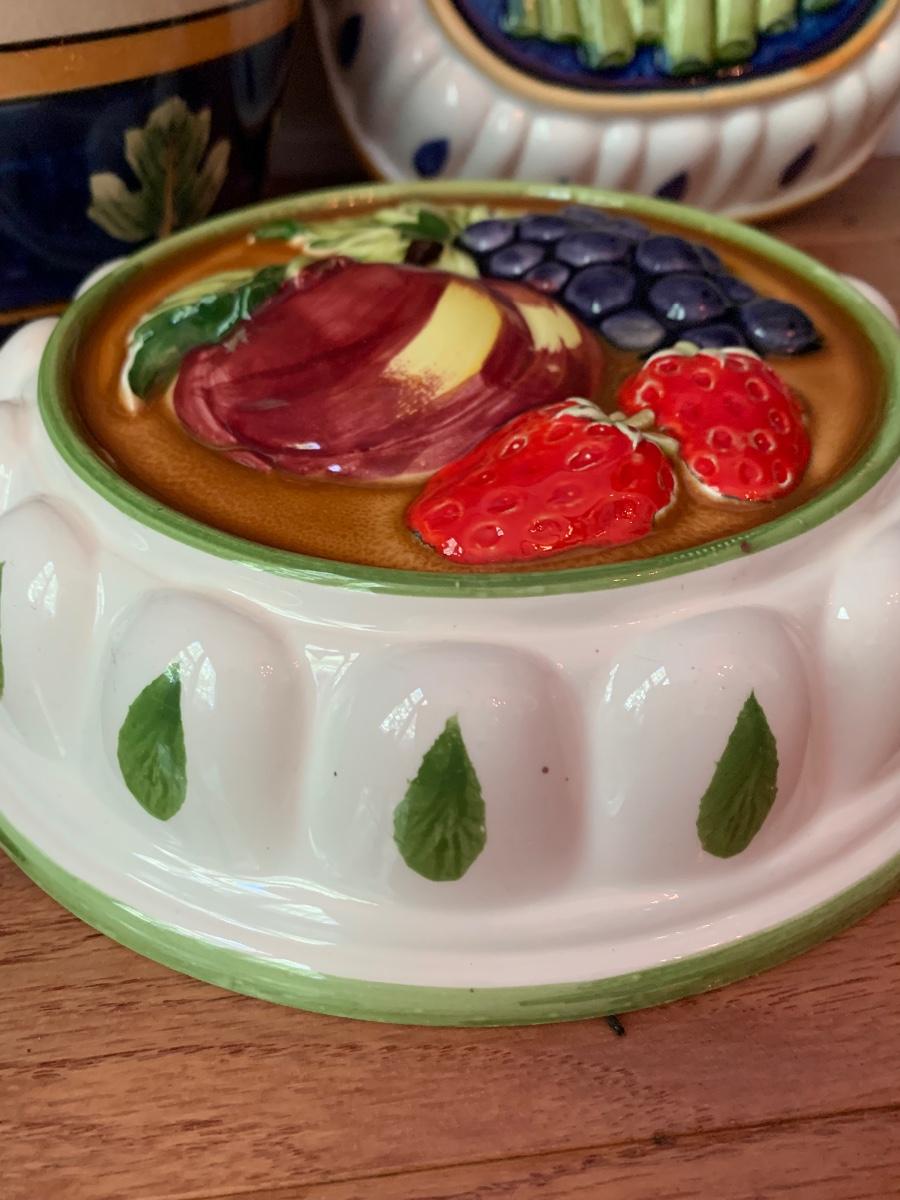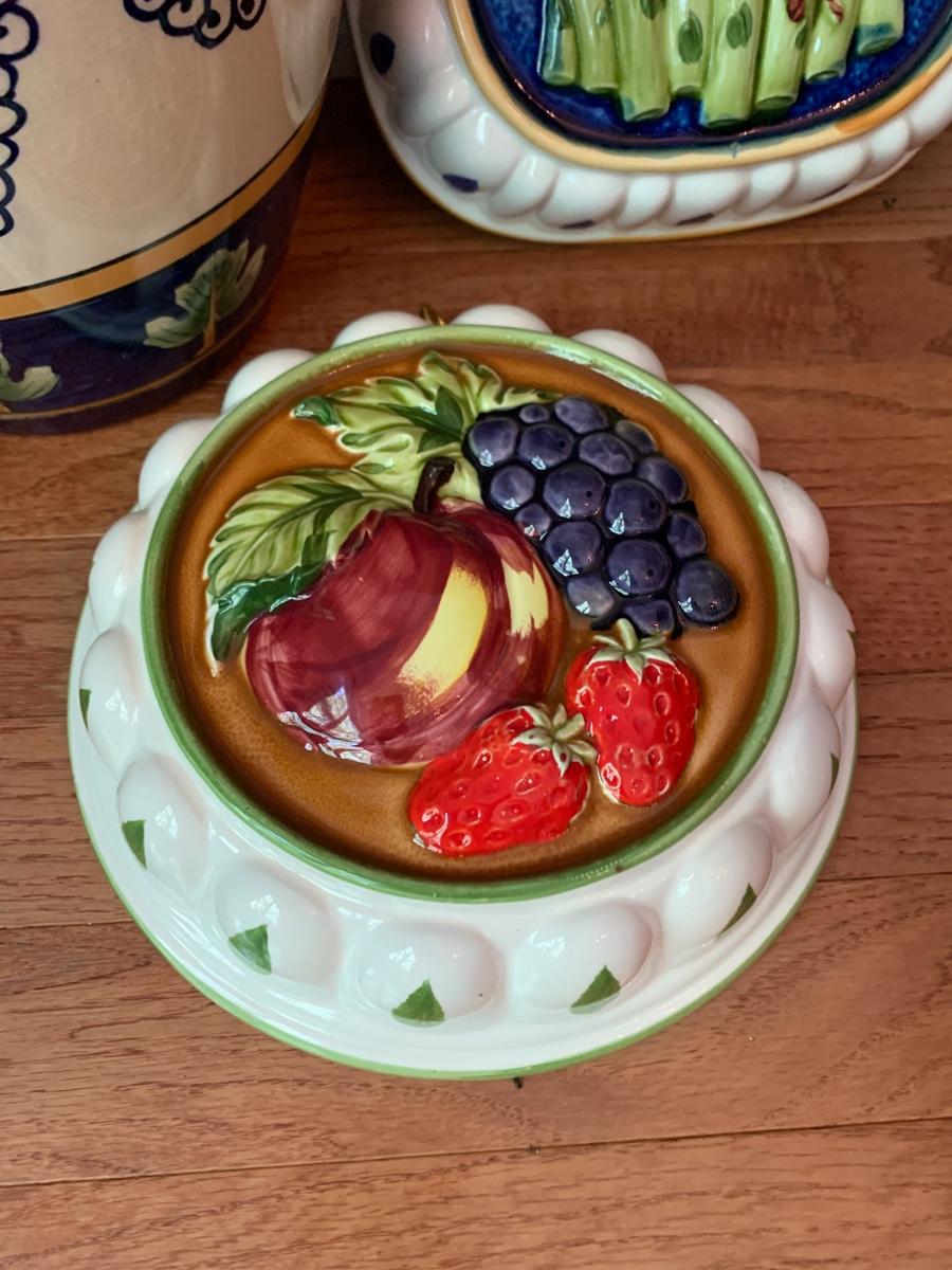 Large polished pottery vase with handles, Vintage Ceramic wall hanging plaque/mold - asparagus and fruit (8.5 x 8.5)