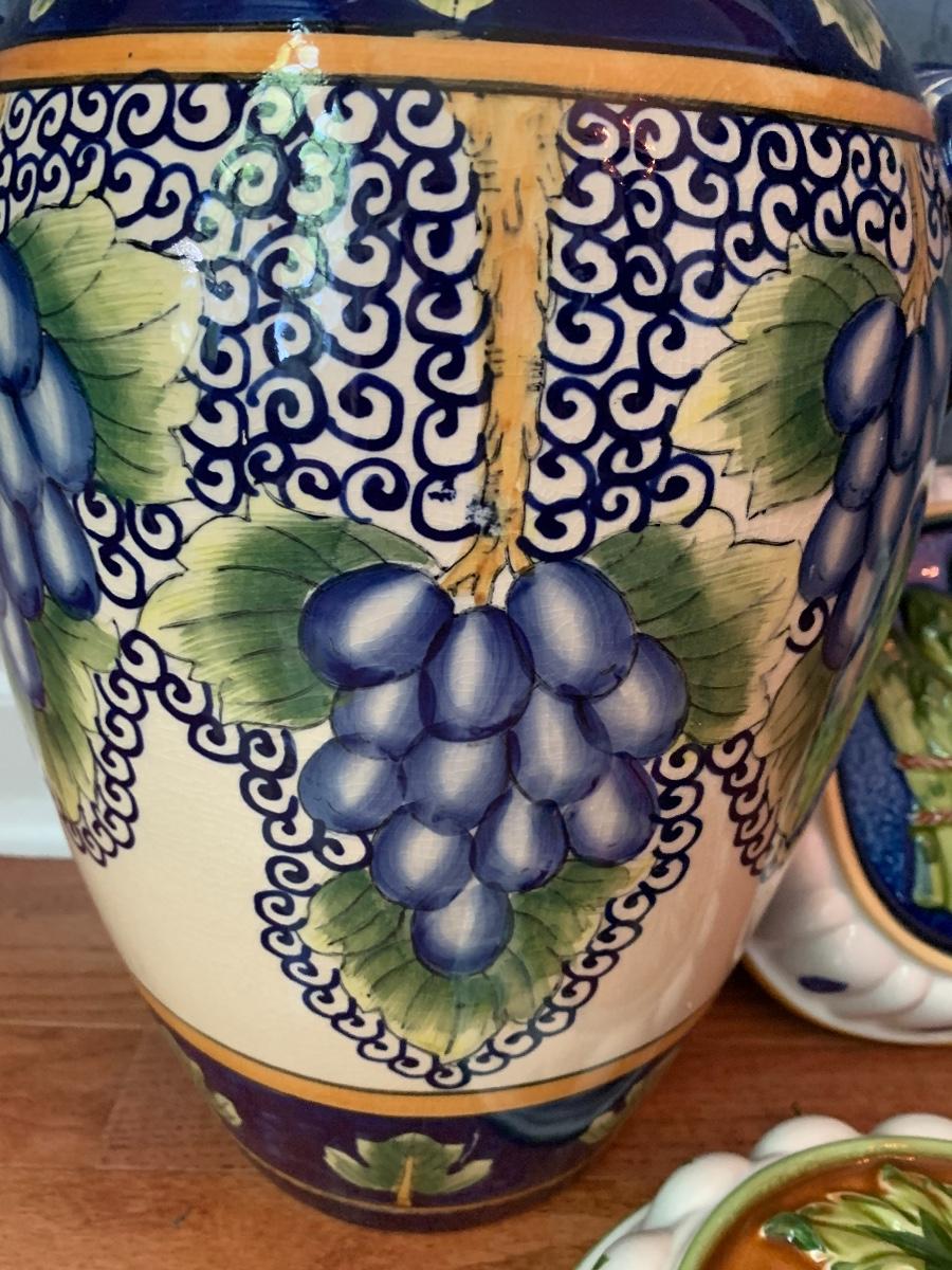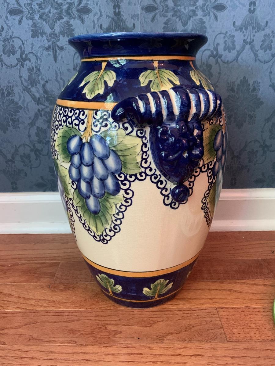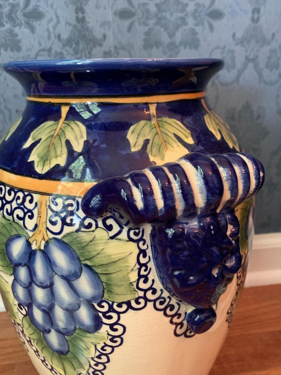 Lot 492: Vintage Wall Hanging Mold/Plaques  Grape Themed Vase w/Handles