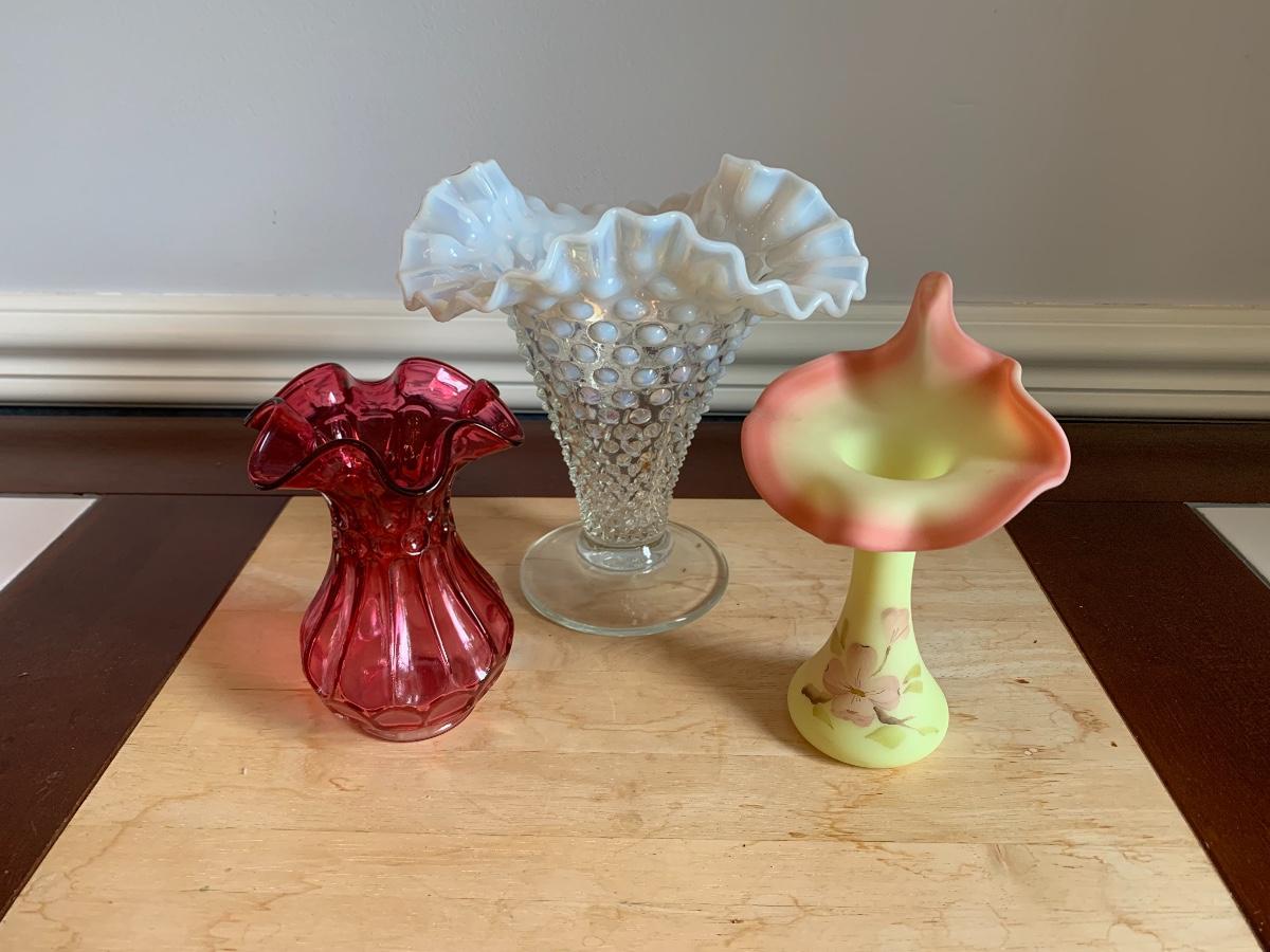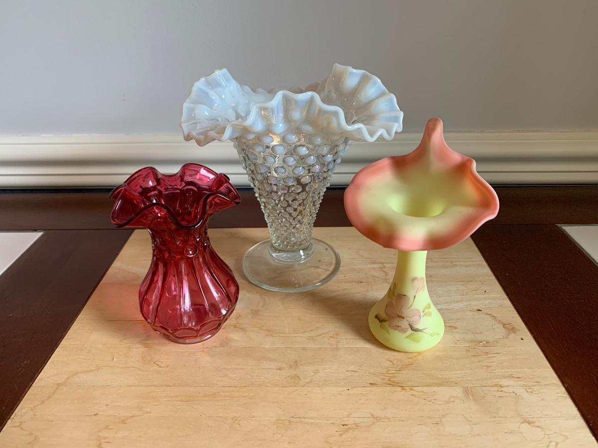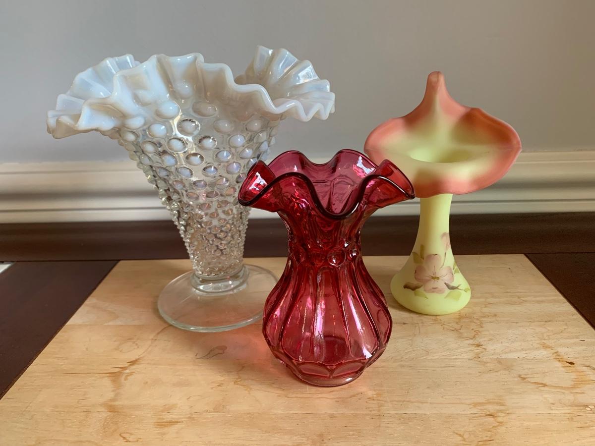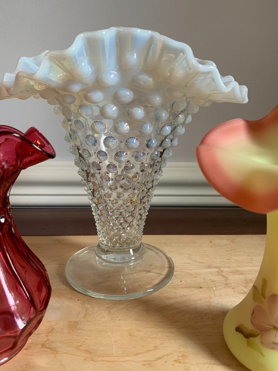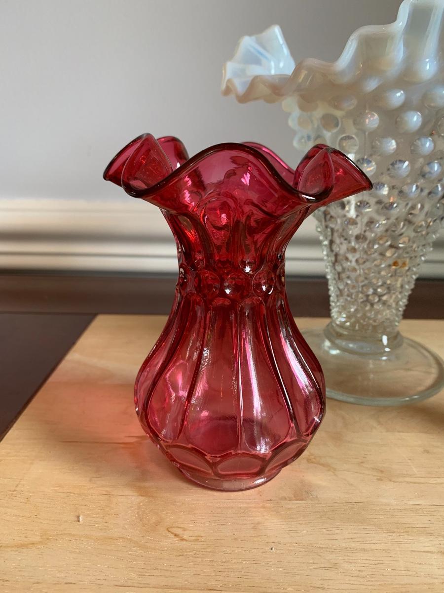 Beautiful Vases: Fenton cranberry glass & milk glass, Hobnail for your home decor