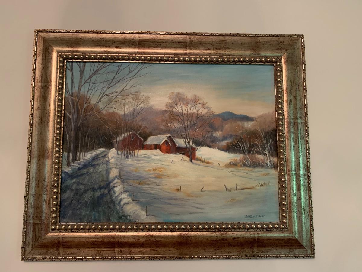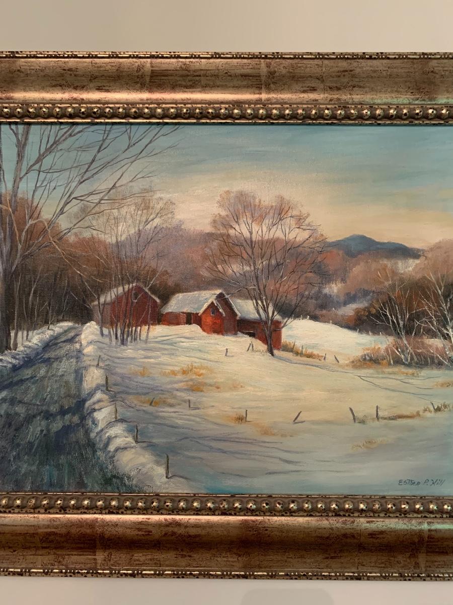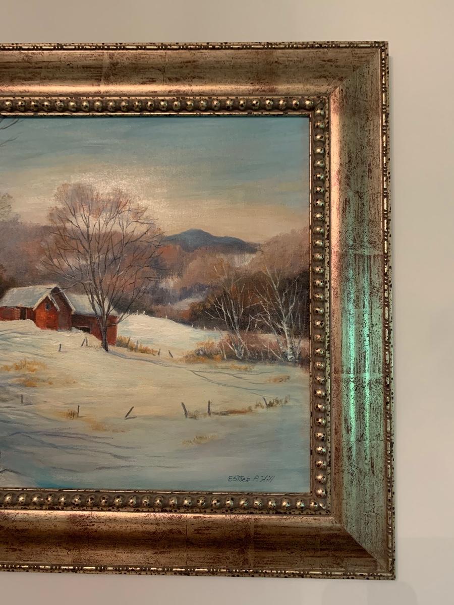 Signed by a local artist of Rutland, VT Ester P. Hill it measures 39 x 27, has beautiful content and color.