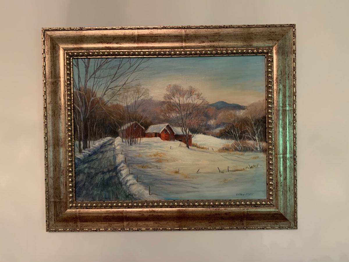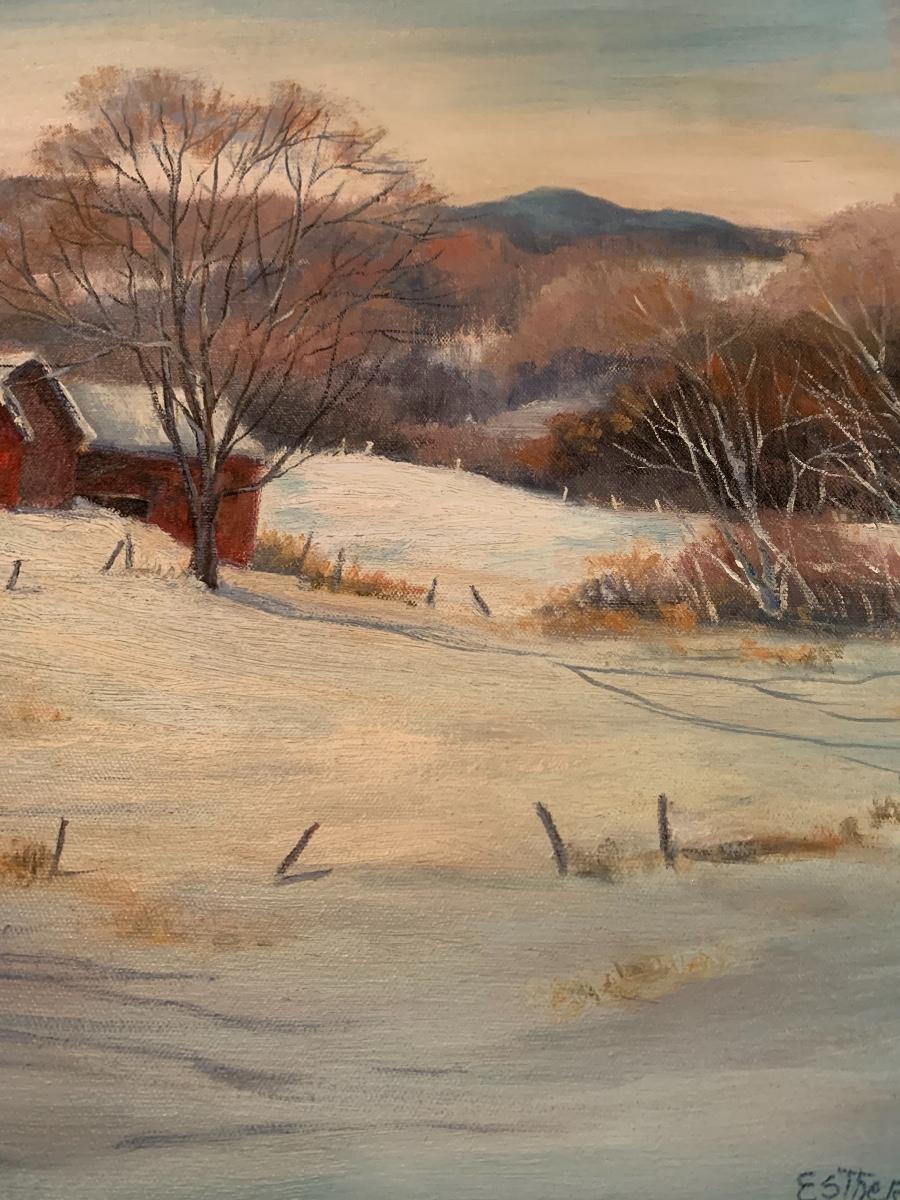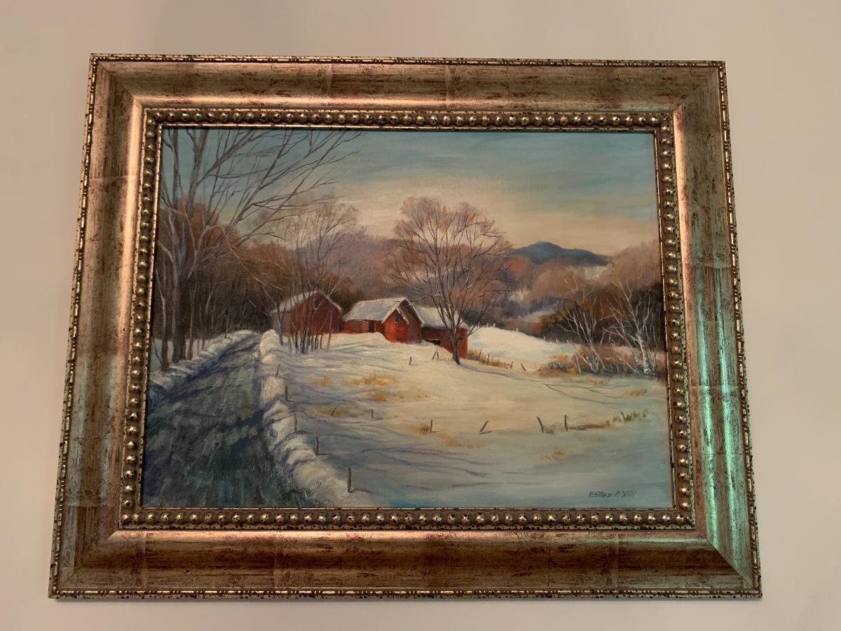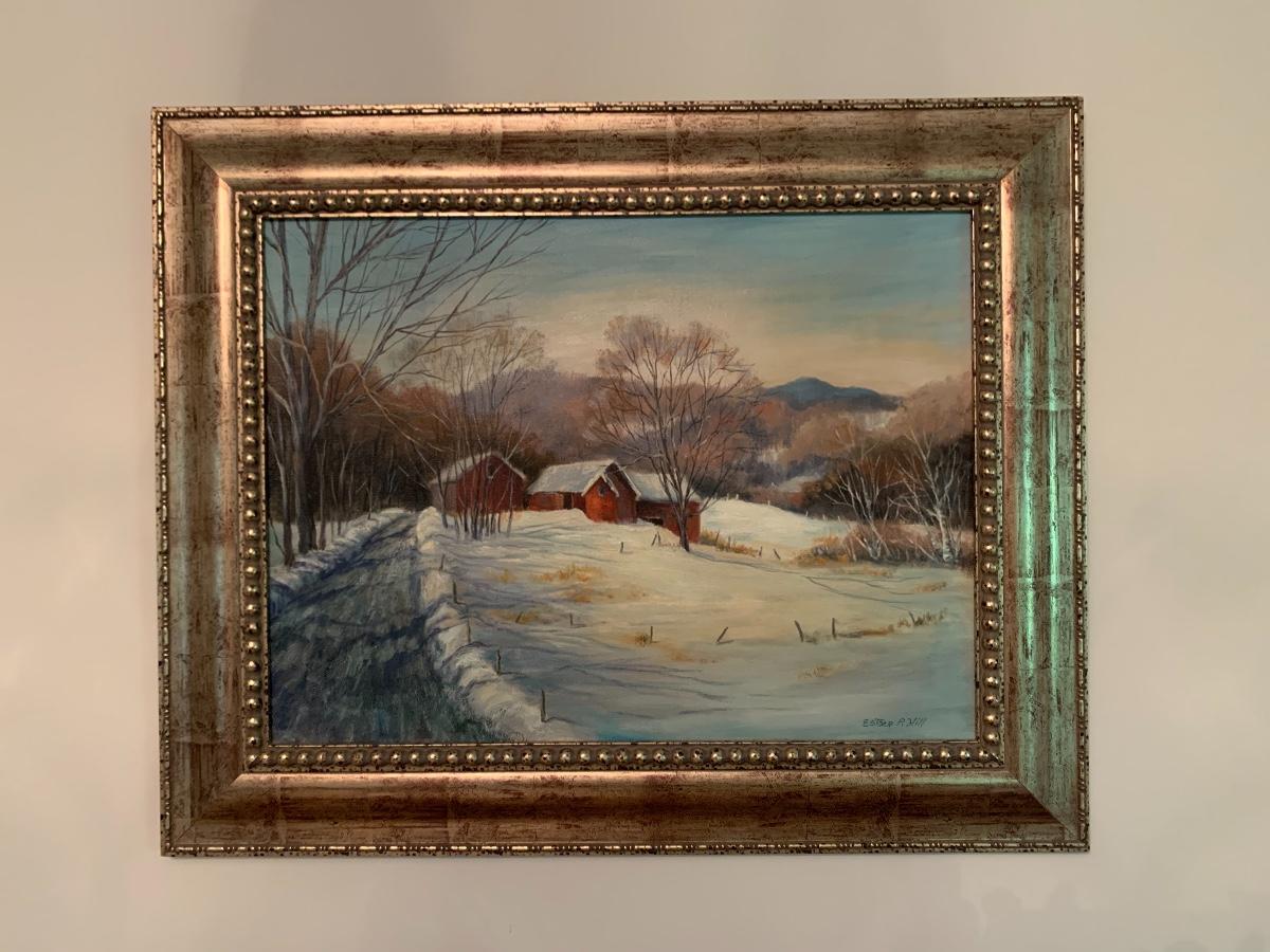 Signed by a local artist of Rutland, VT Ester P. Hill it measures 39 x 27, has beautiful content and color.
