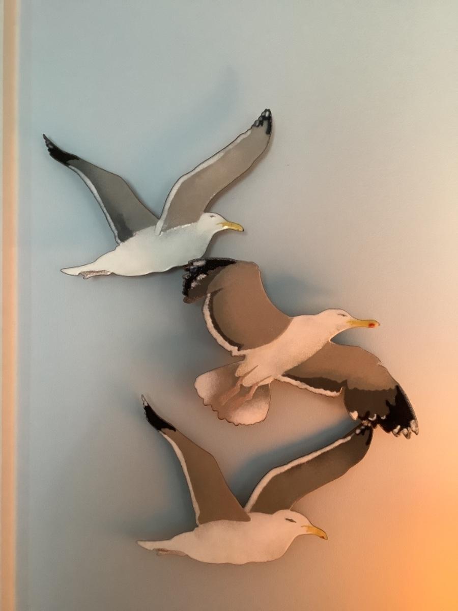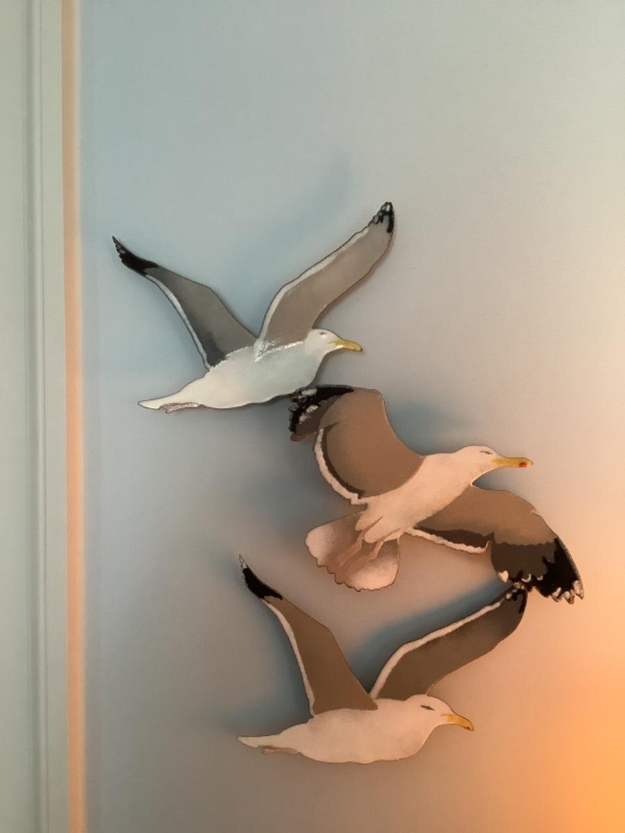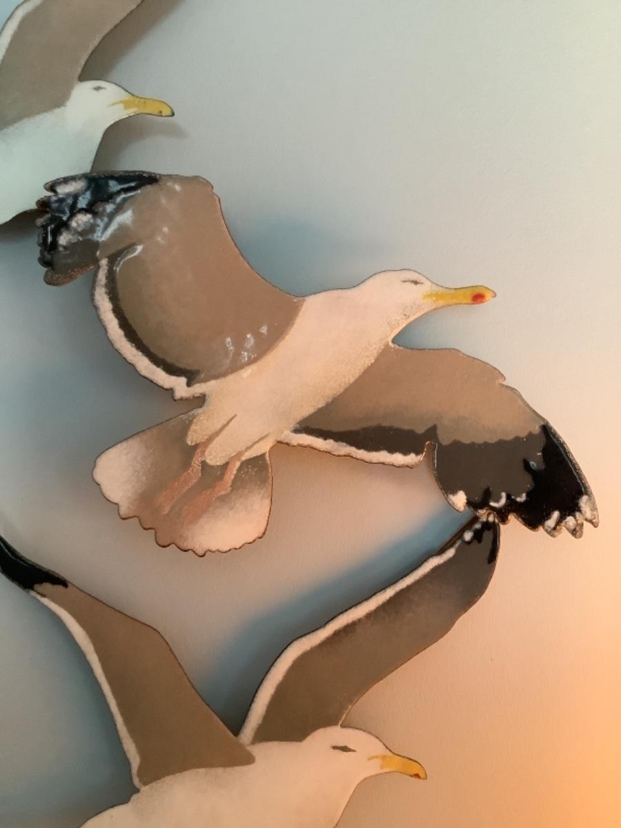 Bovano of Cheshire Enamel on Copper Wall Art of Seagulls -