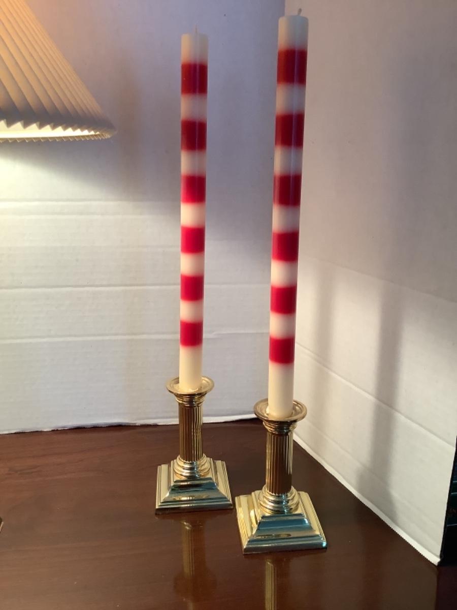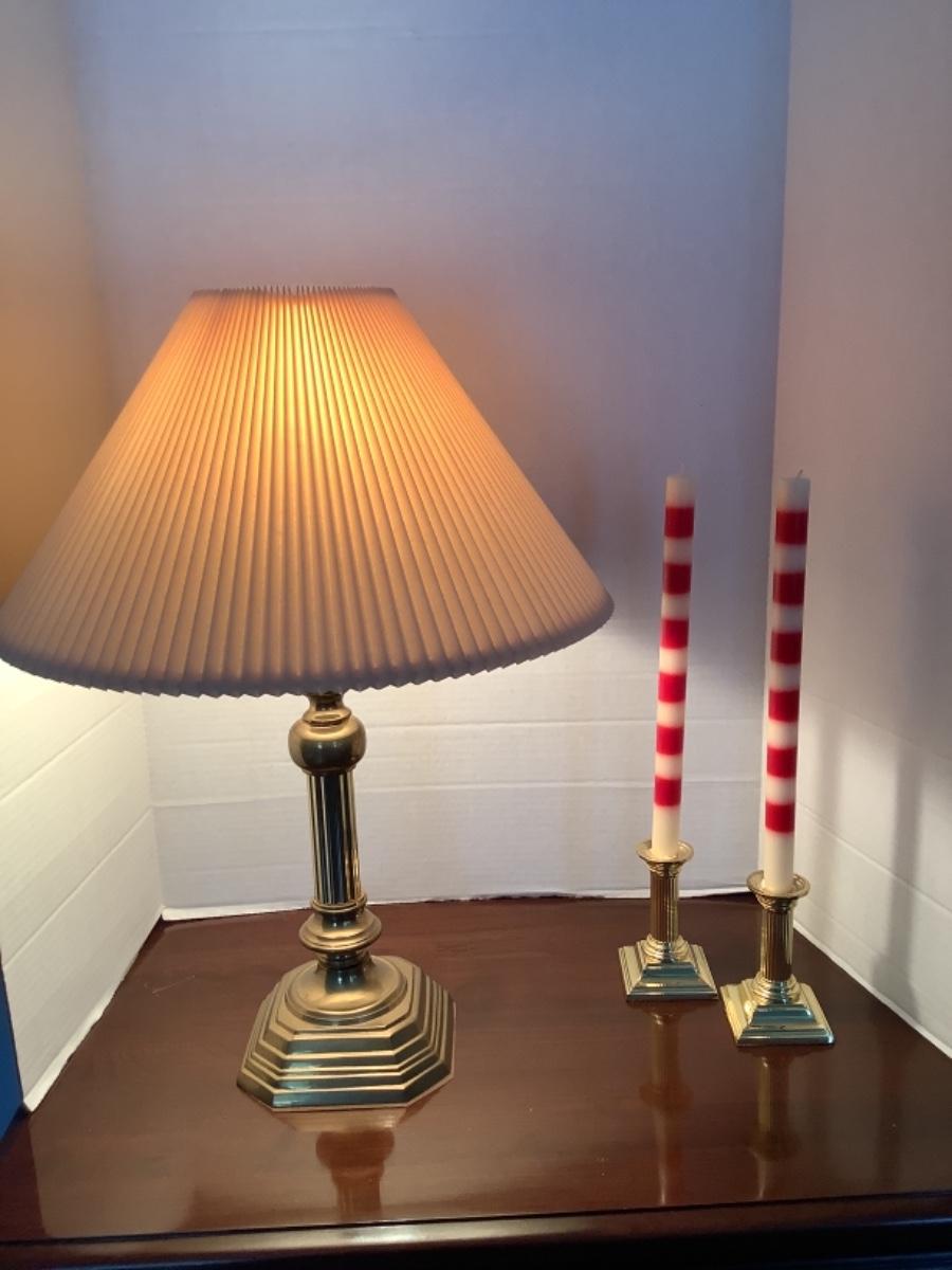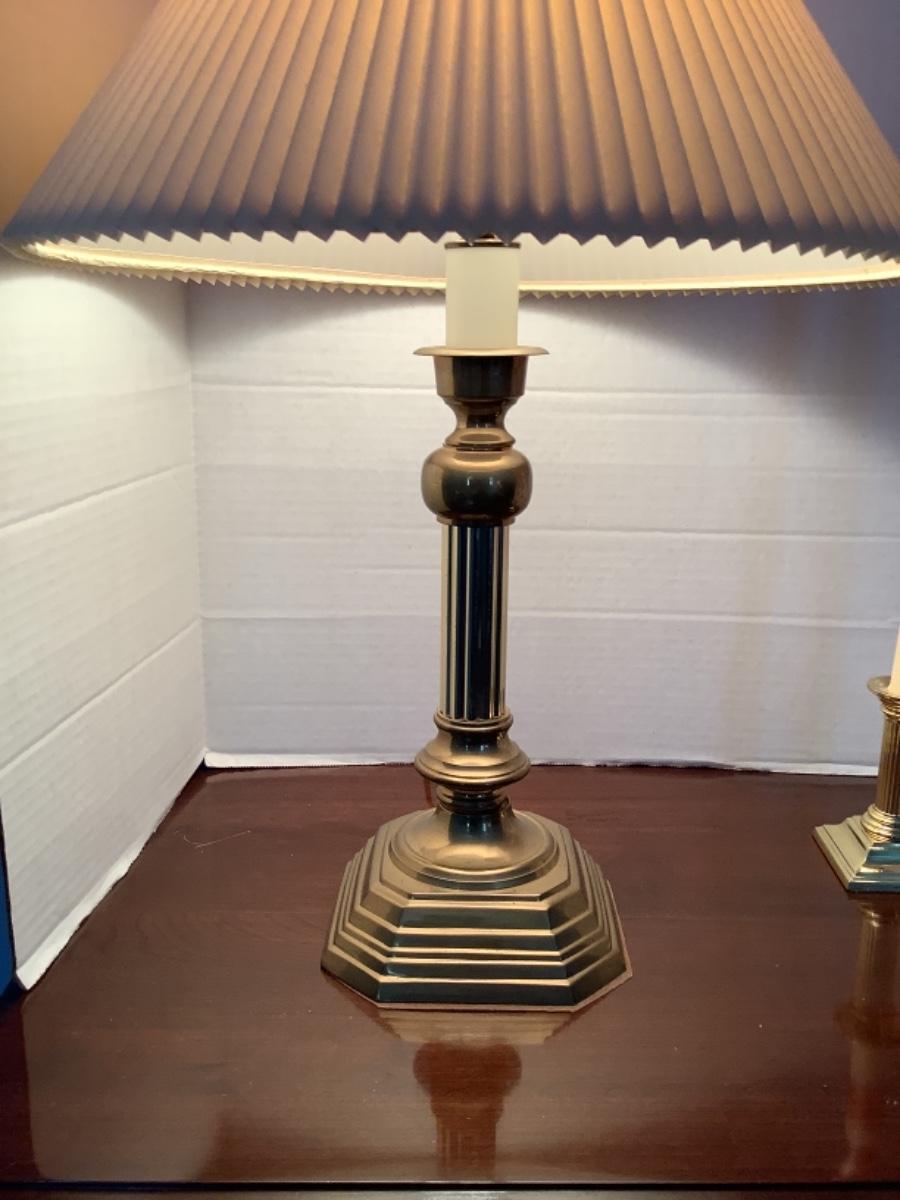 R. 929. Brass Candlestick Style Lamp & Two Baldwin Brass Candlesticks