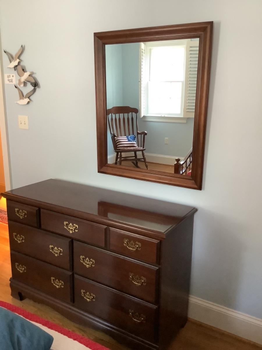 R. 934. Three Piece Mahogany Dresser, Nightstand & Mirror