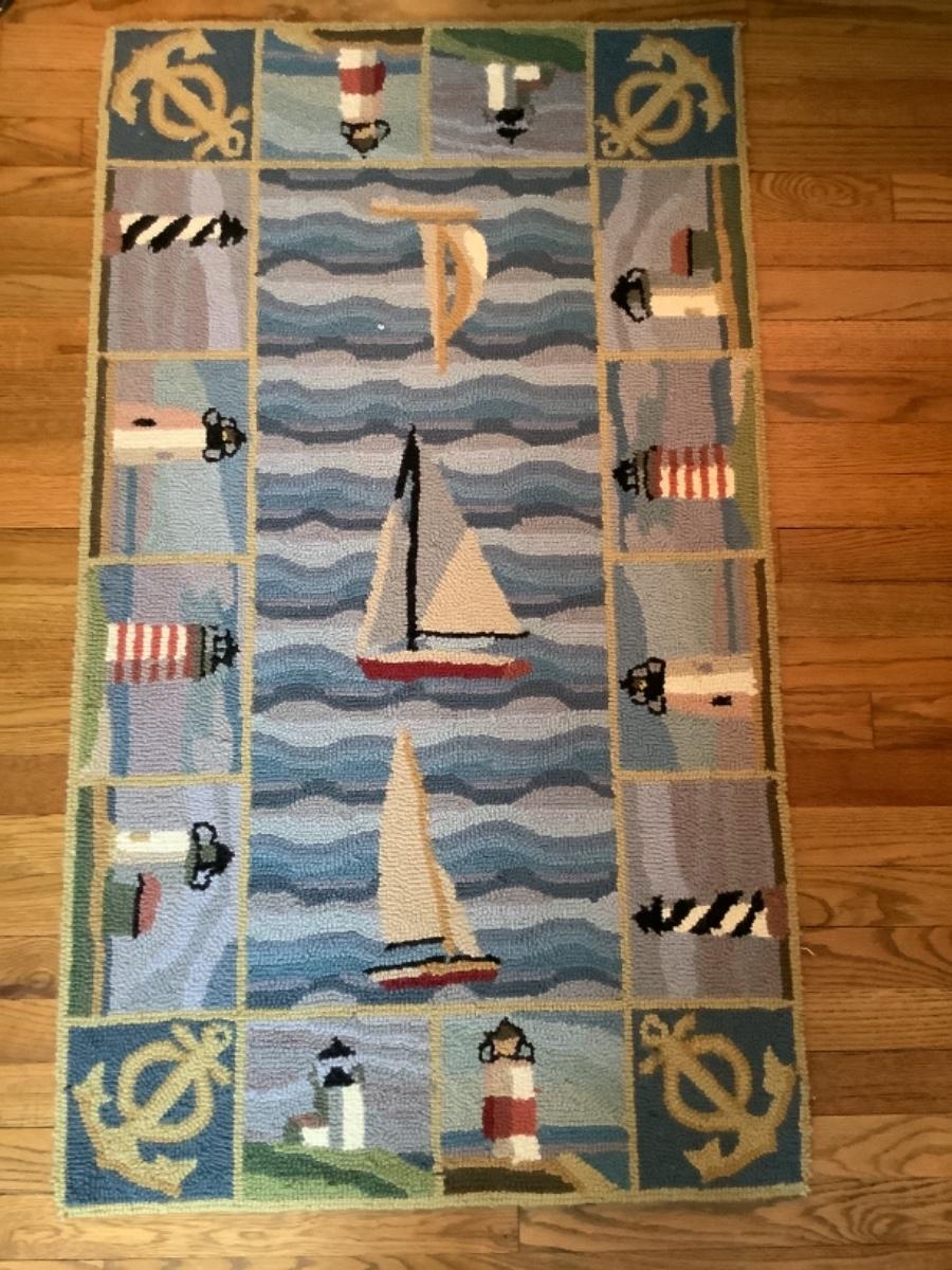 R. 944. Blue Lighthouse Hooked Area Rug