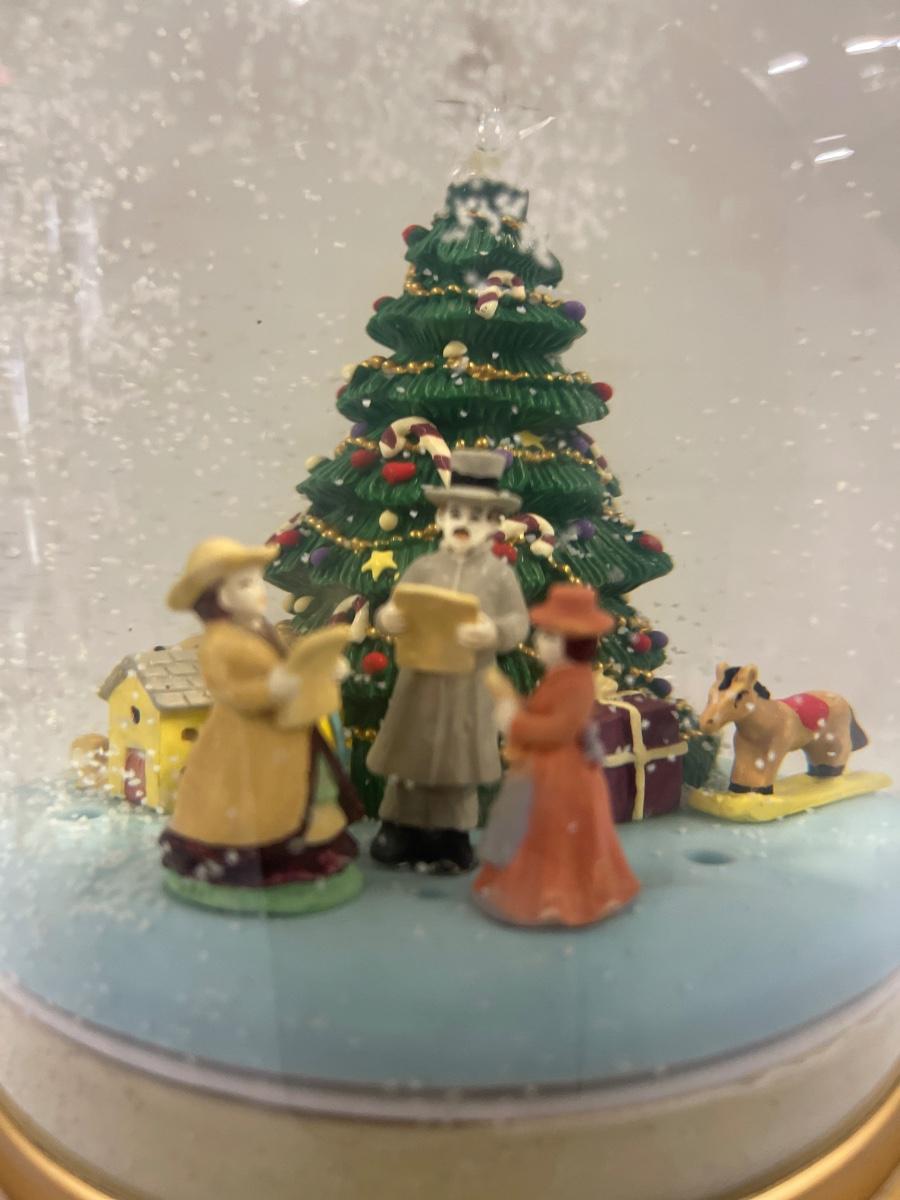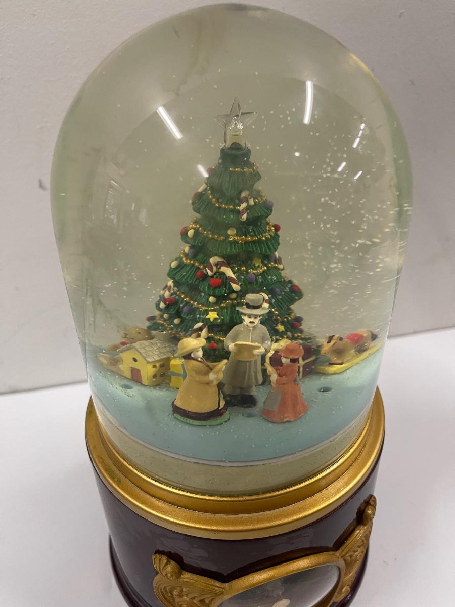 r. Christmas Gold Label Collection Musical Snow Globe Holiday Time 2004. 9”. Working, tested. Battery compartments clean.