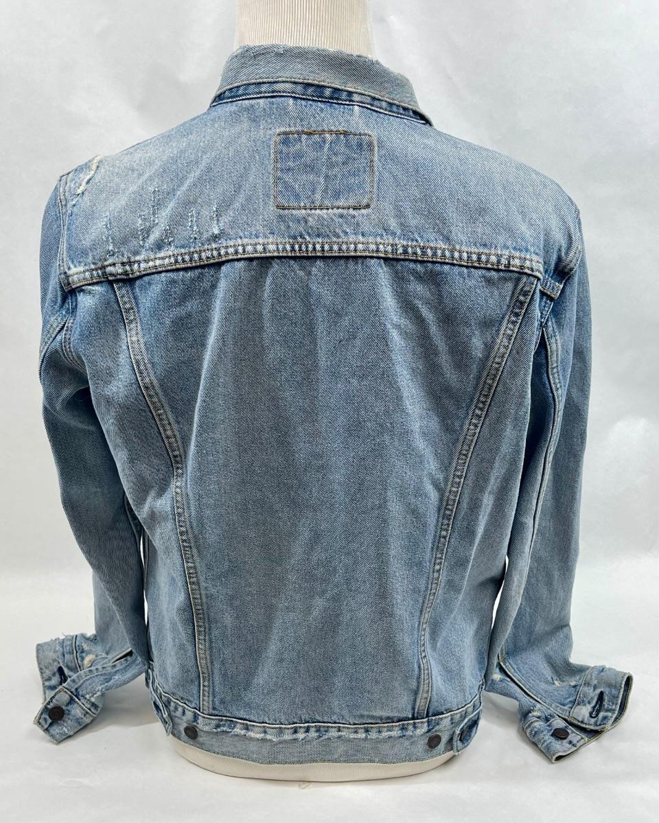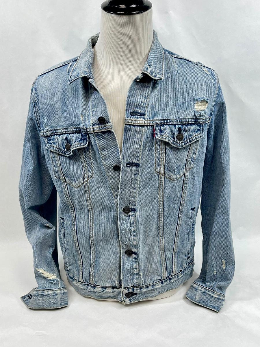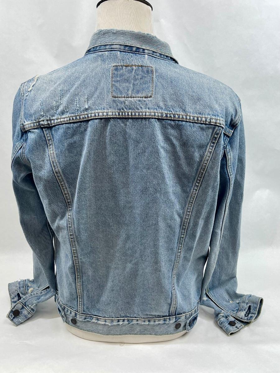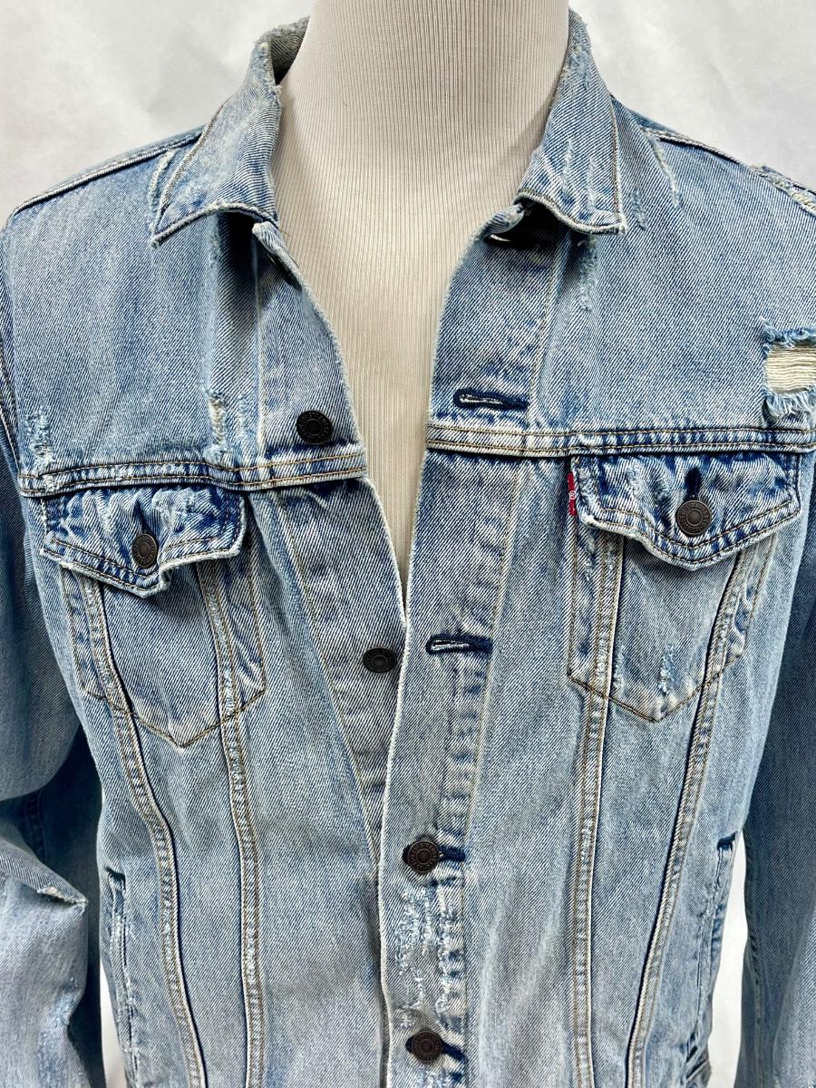 Light blue distressed denim jacket. Levi's men's size large. Good, clean condition.