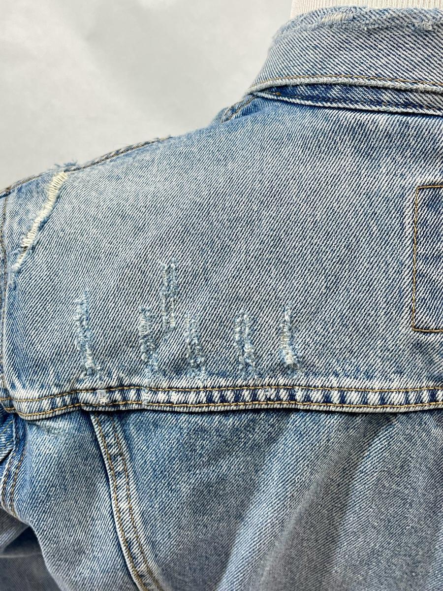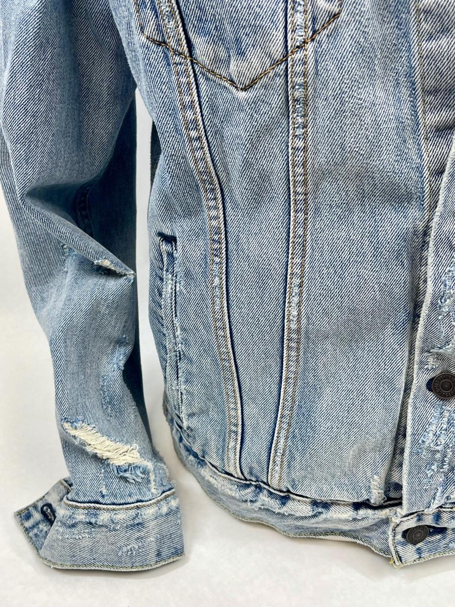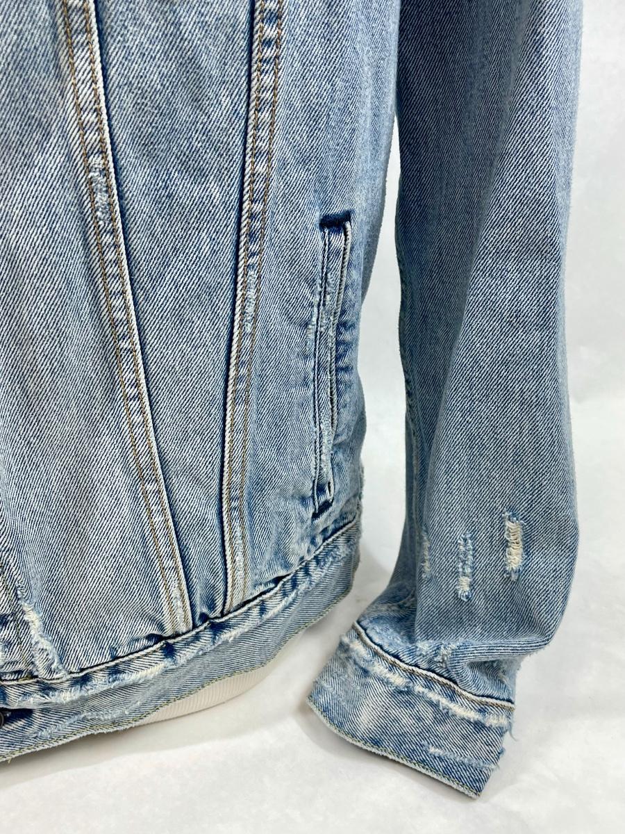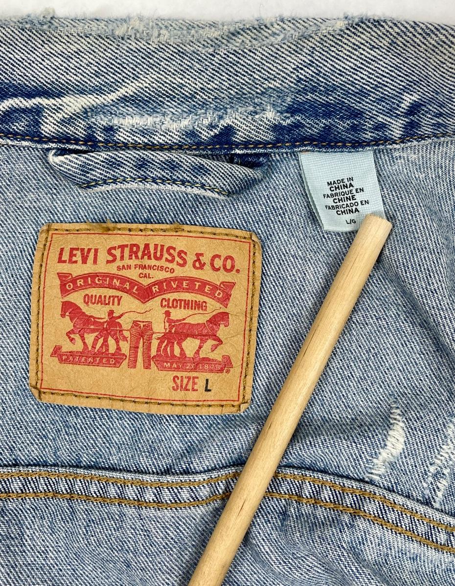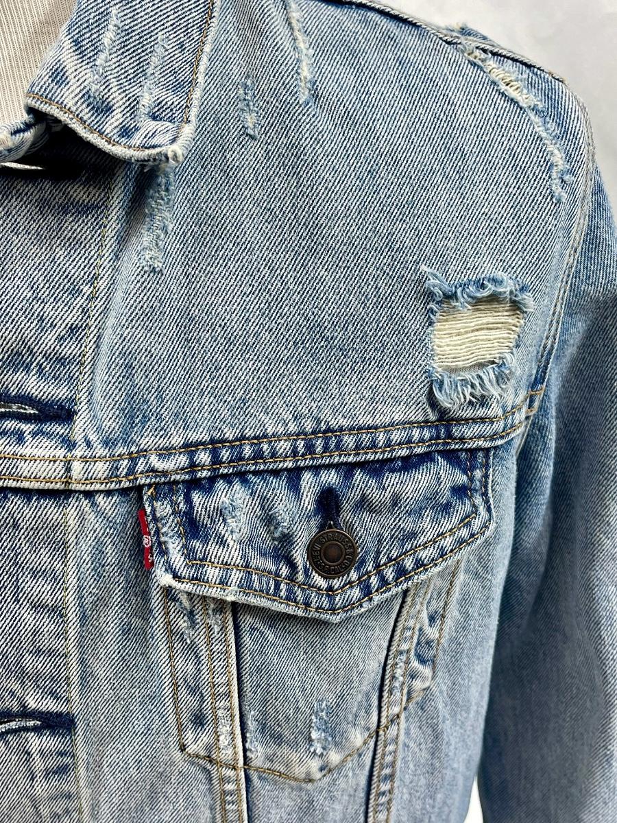Light blue distressed denim jacket. Levi's men's size large. Good, clean condition.