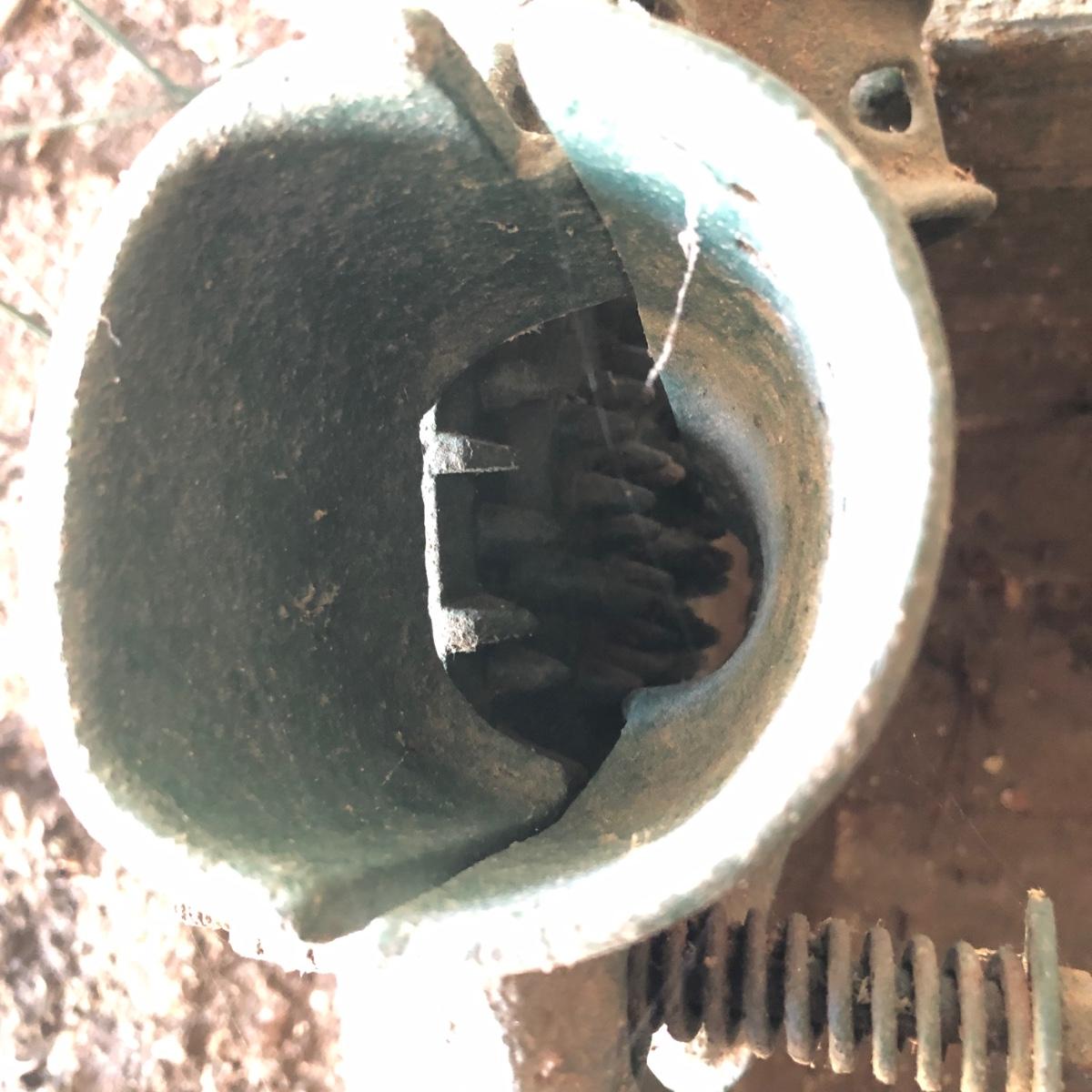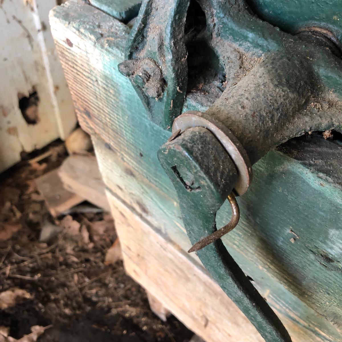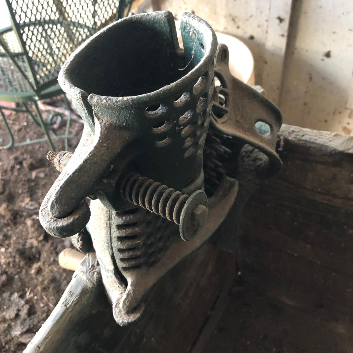 This vintage sheller has “The Root-Heath M.F.G Co. Plymouth O. USA” on the grinding wheel. sheller is attached to homemade bin which buyer can have or leave. Note the nail in the handle. Local pick up only.