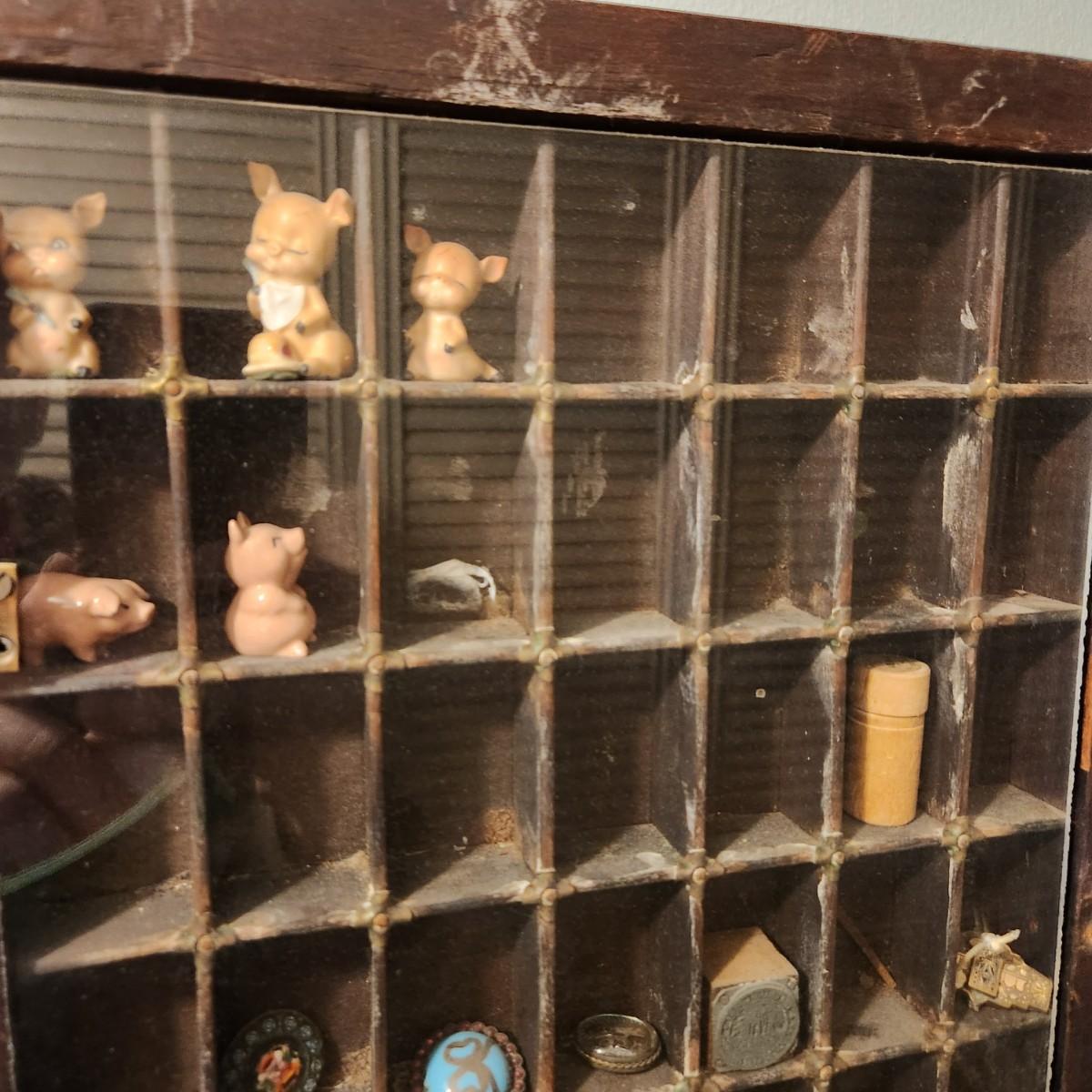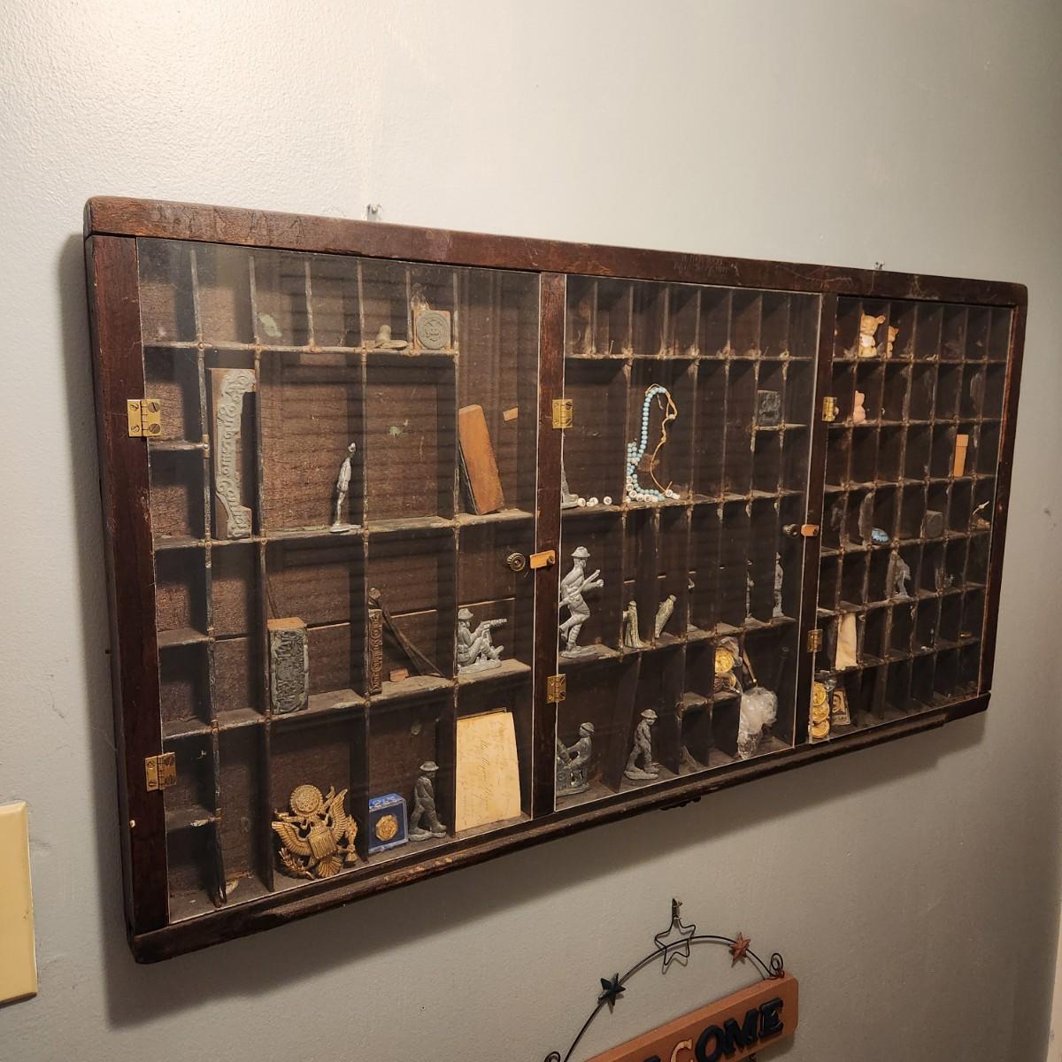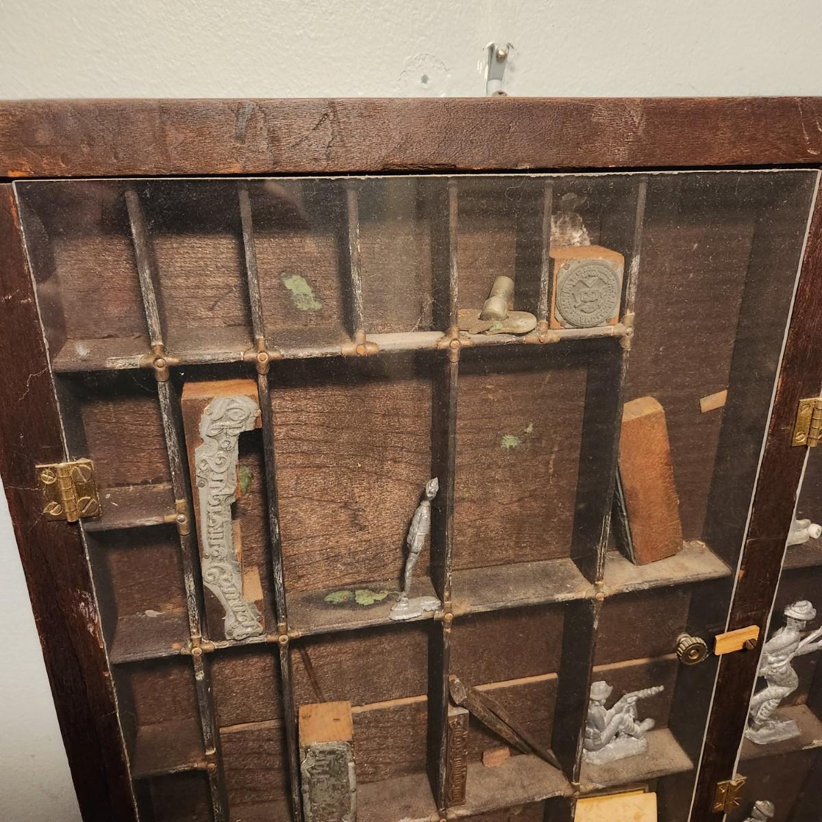 R. Hoe & Co. Wood Printer Type Drawer with Trinkets 32x17 3 hinged doors