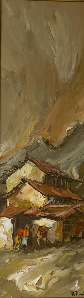 Description: R. Pinott House in Mountains Oil on wood; Framed Measurement: 24.75 x 10; Subject Measurement: 20 x 6