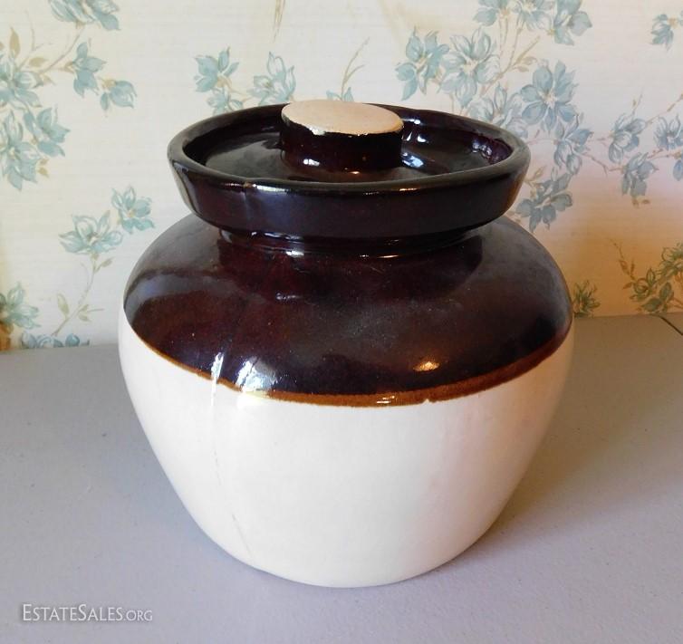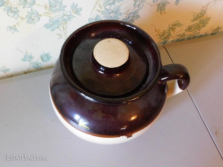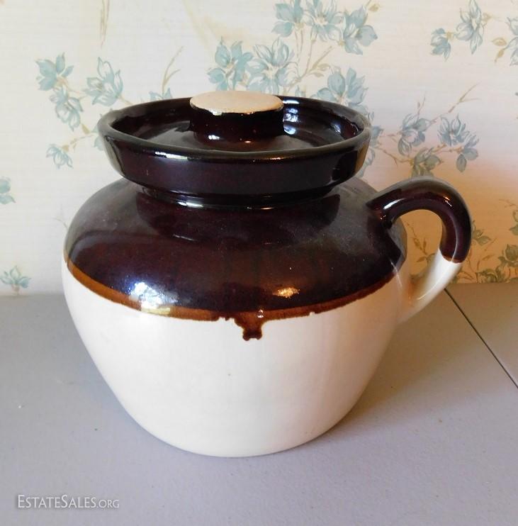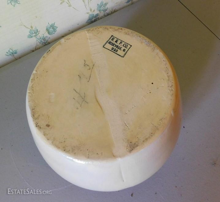 Roseville RRP Co pottery bean pot with lid. No cracks or issues but looks like a factory drip in coloring under glaze