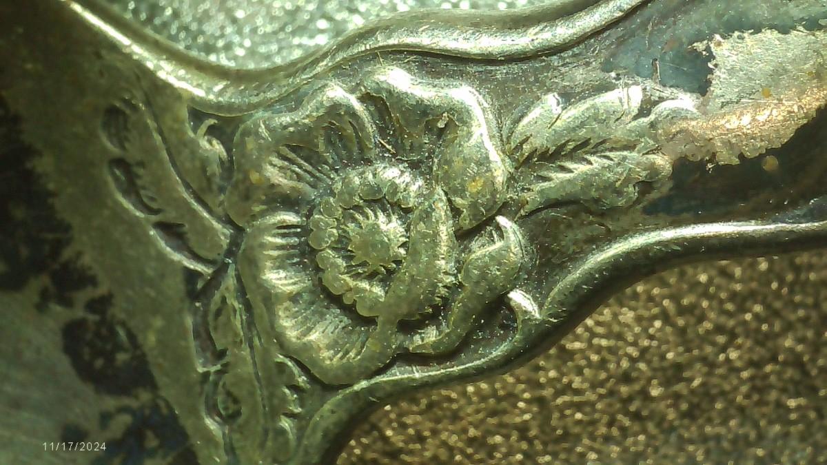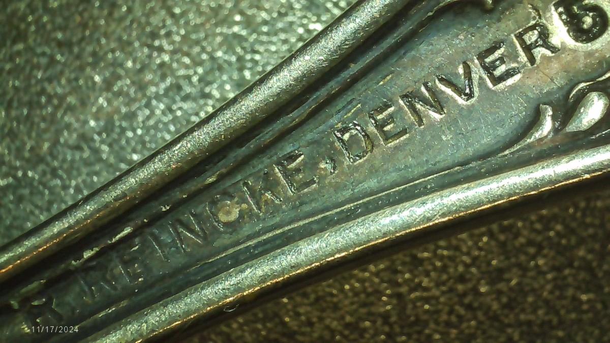 R. Reincke Denver 5, Victorian style ornate design on handle. Reincke's Cutlery & Silverware Shop sold premium quality items at 807 16th St. Denver, Co.