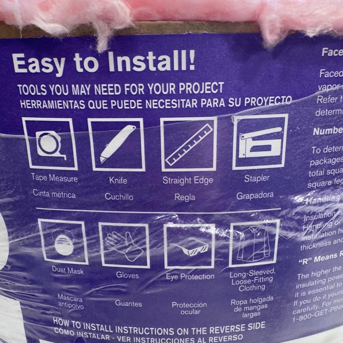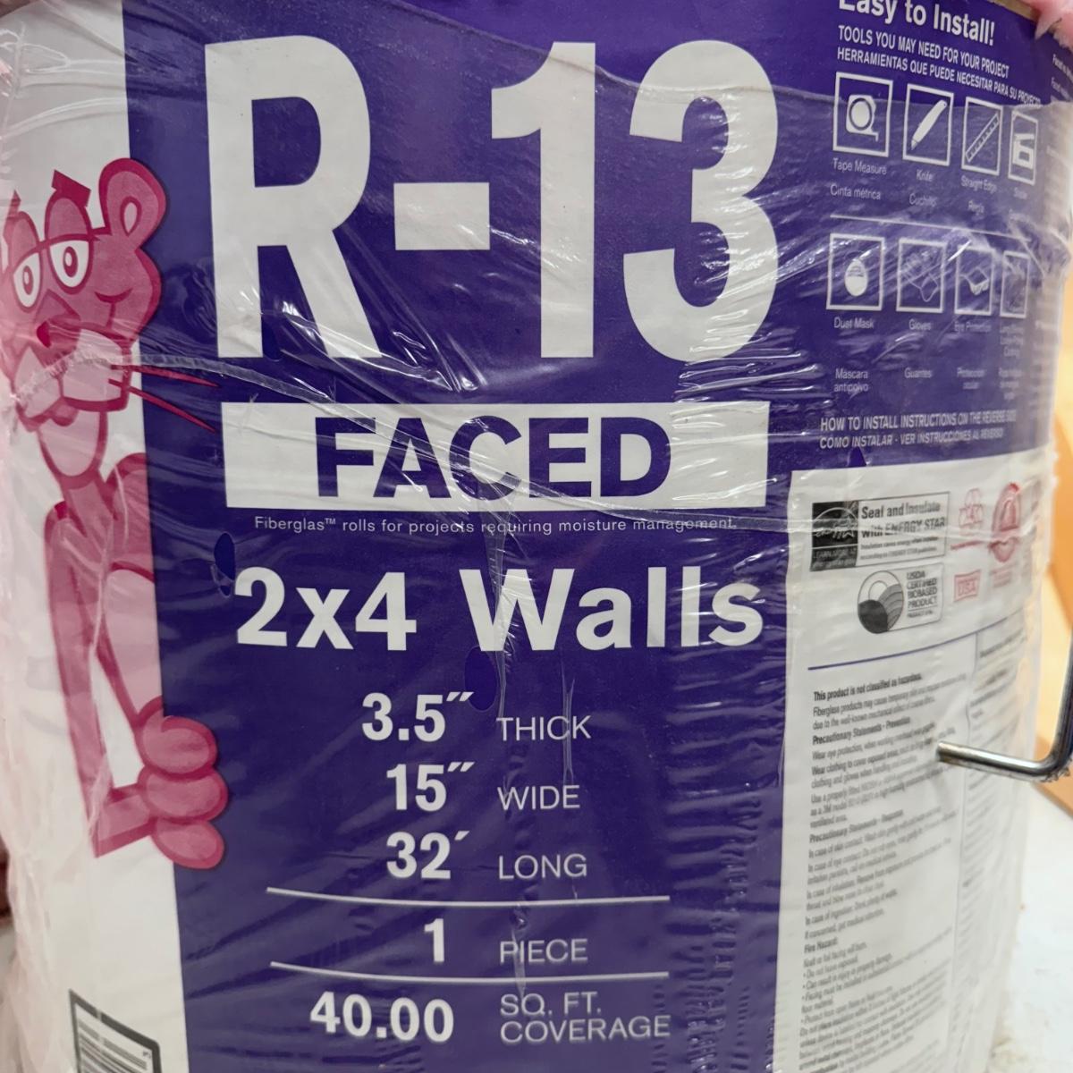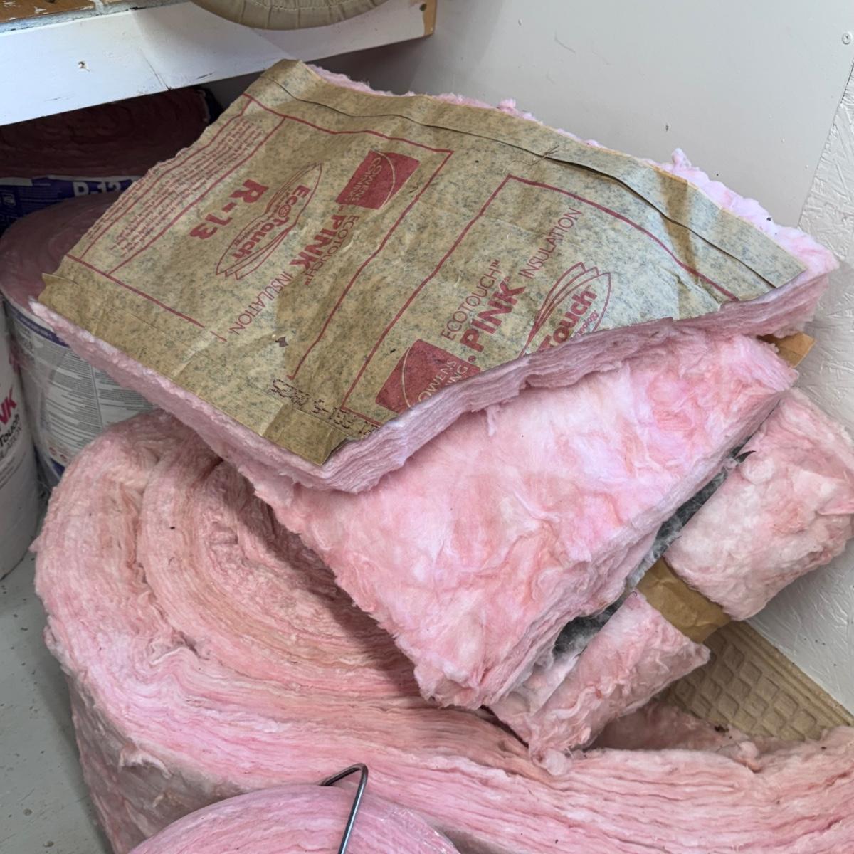 This lot includes six full rolls of R-13 Faced 2x4 pink wall insulation, along with a pile of unrolled insulation. Local pickup only.