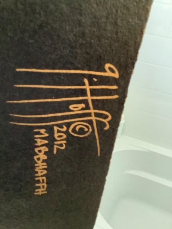 Mixed Media Decorative Art Wall Panel in Black & Gold dated 2012 and signed G. Hoff “ Mabbhaffh” material is paper , wood.