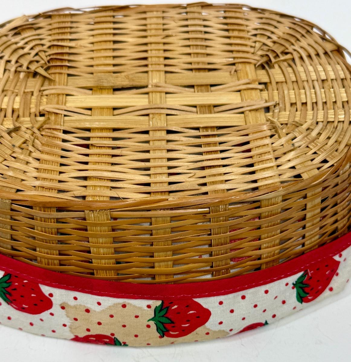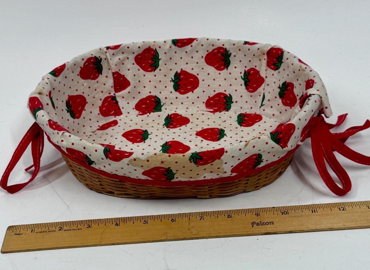 Vintage Oval Bread Basket with Strawberry Patterned Insert