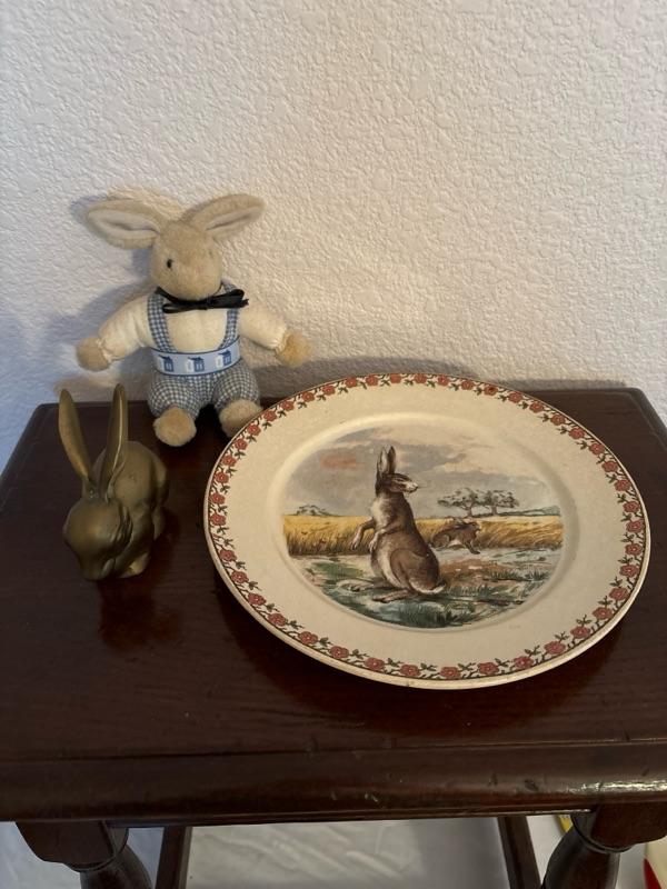 Lot 63 - Rabbit Collectors Plate, Brass Rabbit and Plush