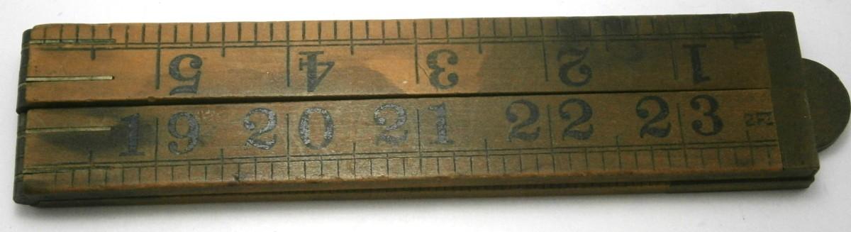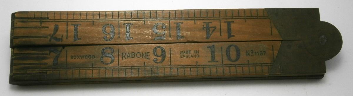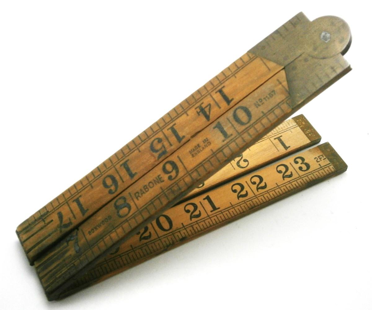 RABONE Folding Ruler from the Early 1900's made in England, 2ft length (fully open), made of boxwood & brass.