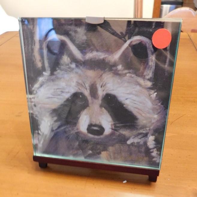Raccoon Detail Print by Brevard Artist A. Dergara Framed in 1/2" glass and wood with slight chip in glass corner