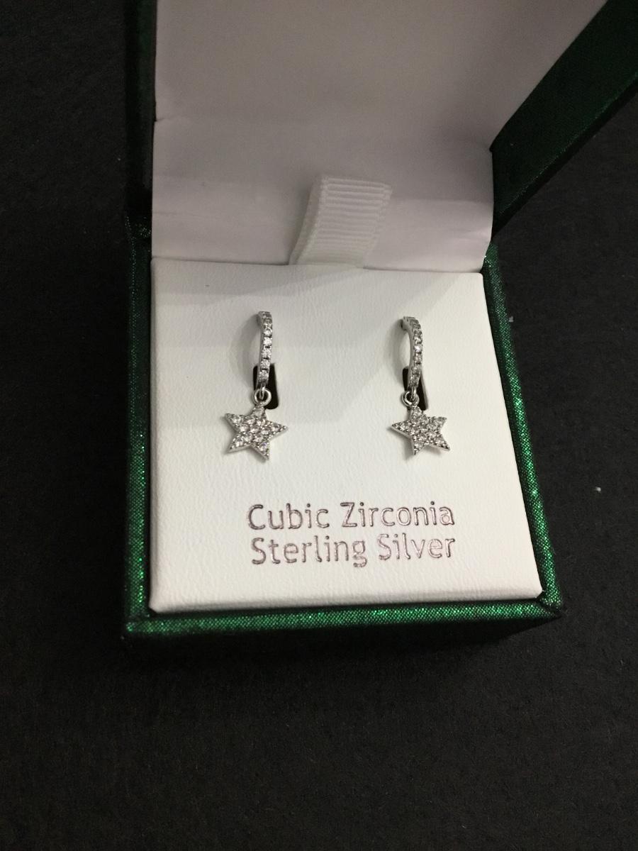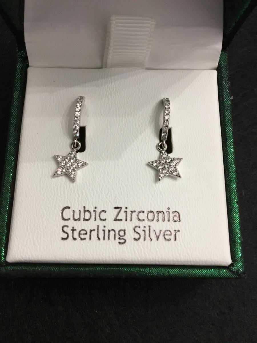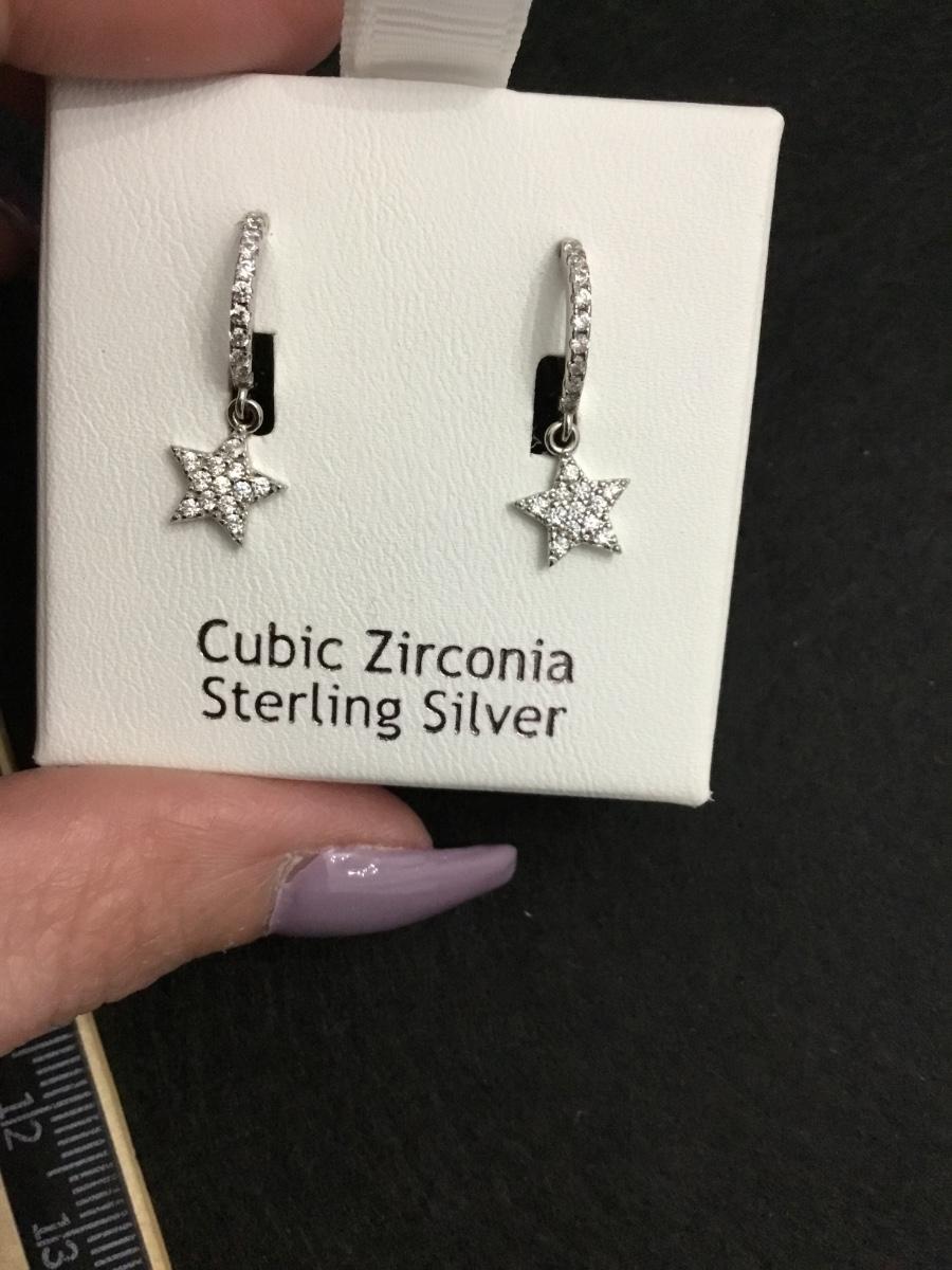 Rachel Ashwell sterling silver CZ sparkly beautiful, rhinestone hoop star charm dangle earrings