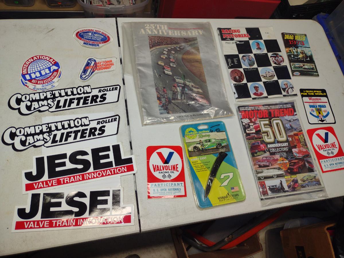 Racing Collectibles. Vintage magazines, decals, cutlery. Please see all pictures for selection.