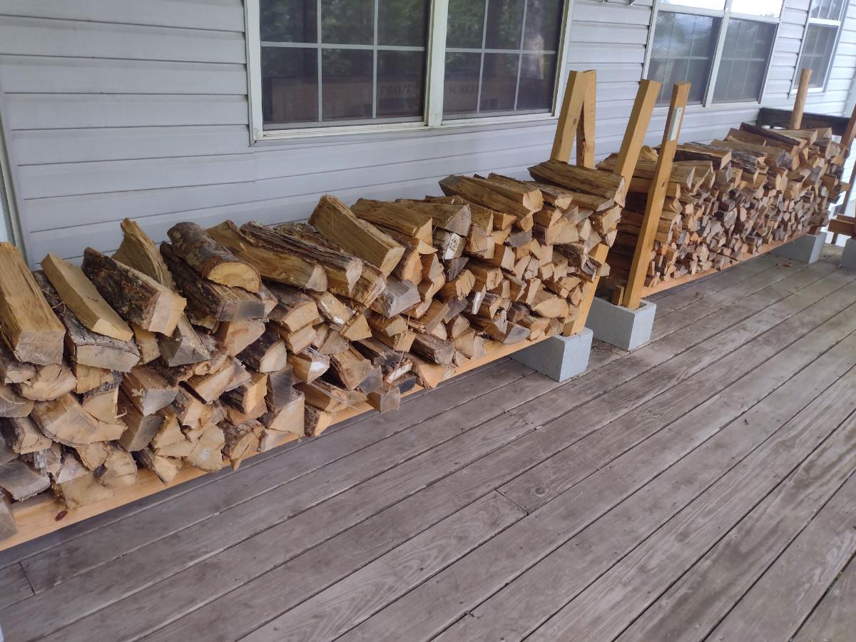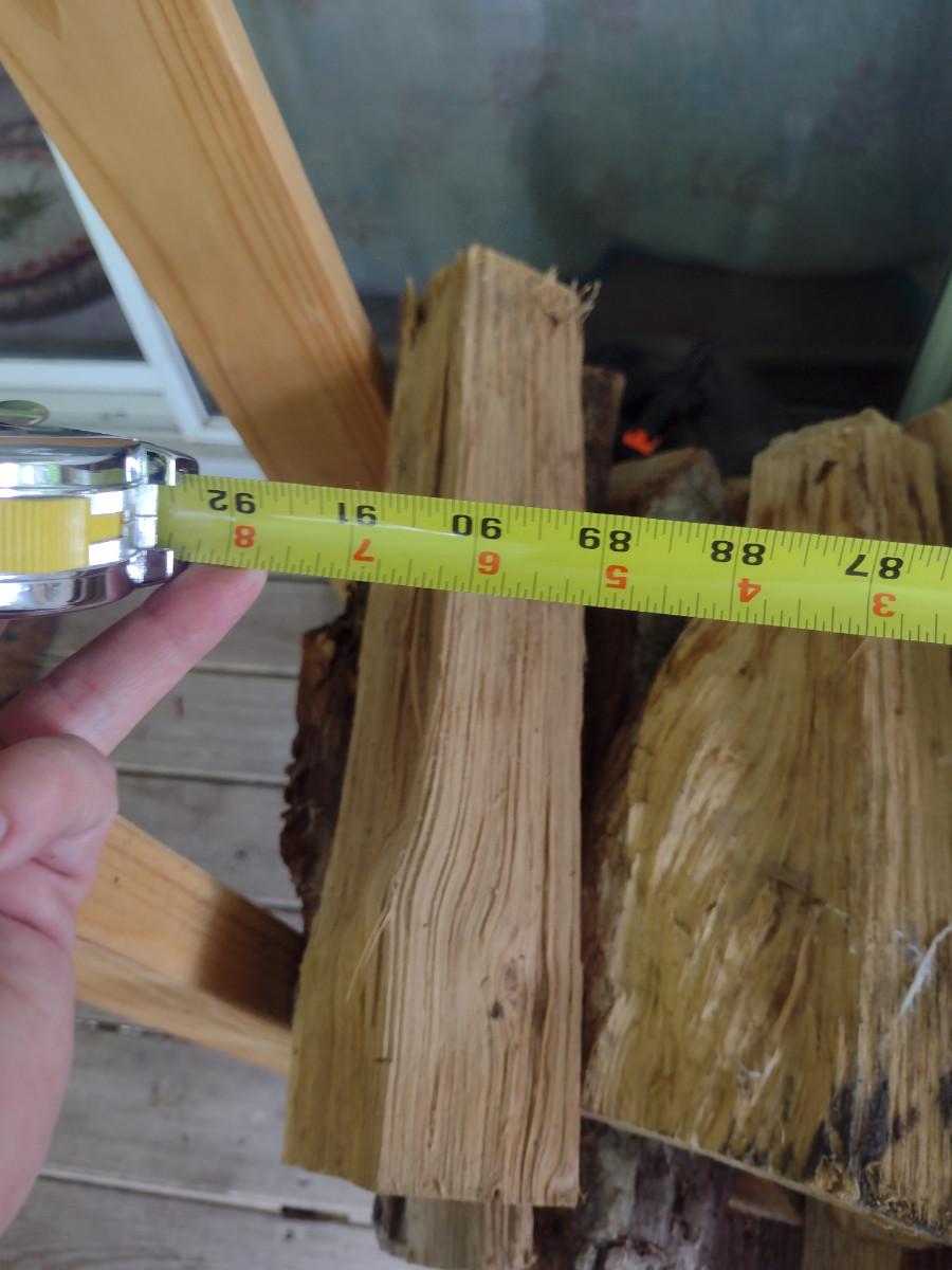Rack of Firewood (Choice B- Right Side). Logs are cut into approx 15 1/4" sections. Rack measures about 92" long, wood is stacked nearly 23" high. Item is located on the basement level of the home and will have to be taken up a hill to the street.
