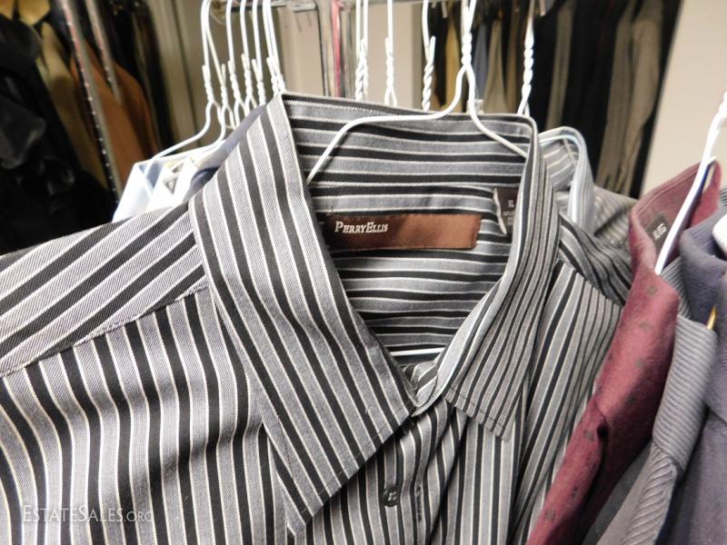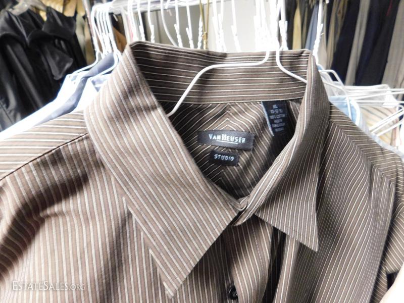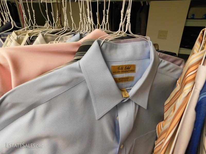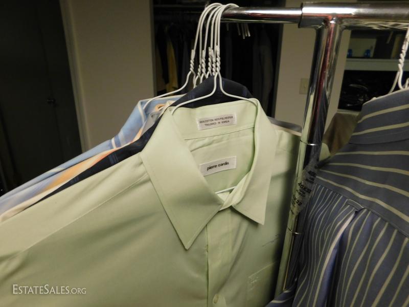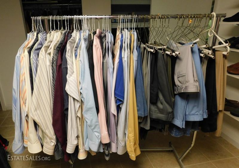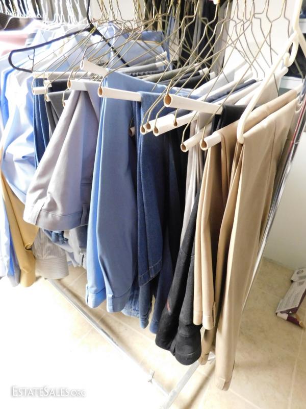 Rack of Men's Dress Shirts and Pants Various Sizes