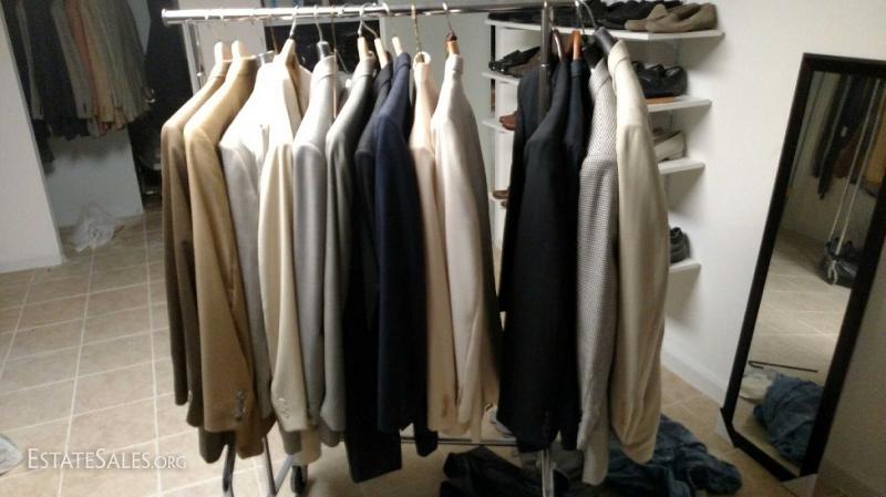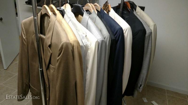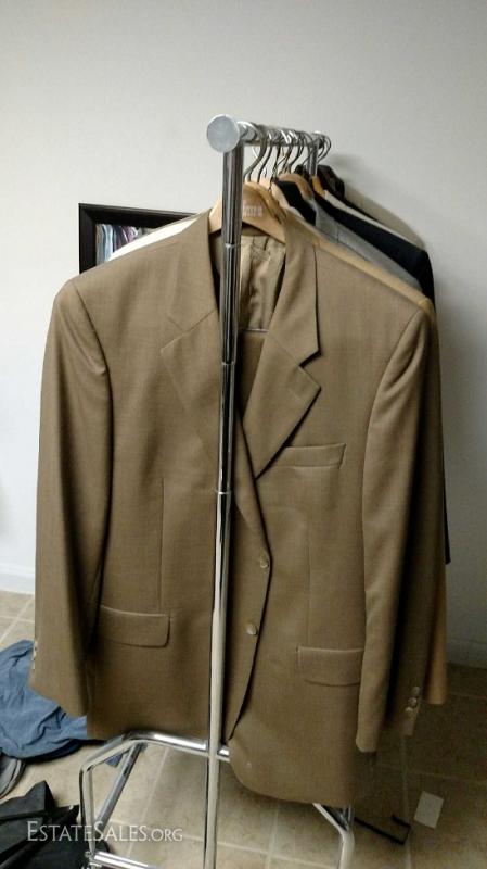 Entire rack of men's suits of various sizes and makers. Most are two piece. Sizes range from Large to XL.. The clothes rack does not go with the purchase. Must take all suits.