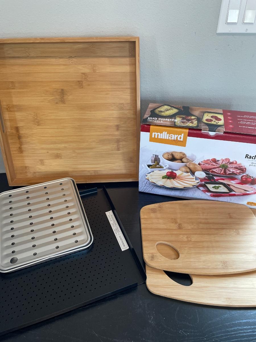 Raclette Grill & bamboo trays/serving boards