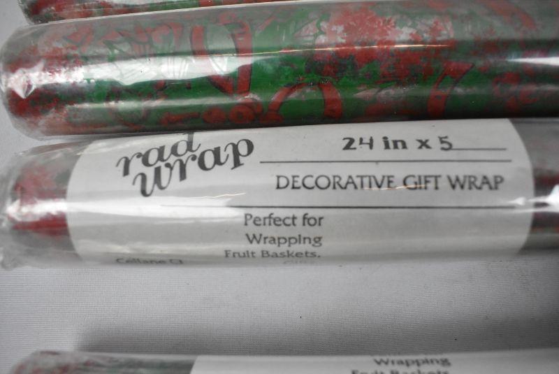 Rad Wrap Transparent Gift Wrap, 11 Rolls, 24" x 5' Each, Red & Green Christmas - New