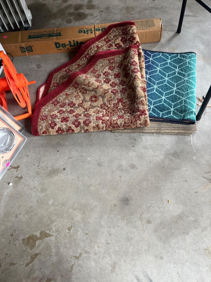 Radiating heater, misc. items, rugs, roaster,,ice chest,