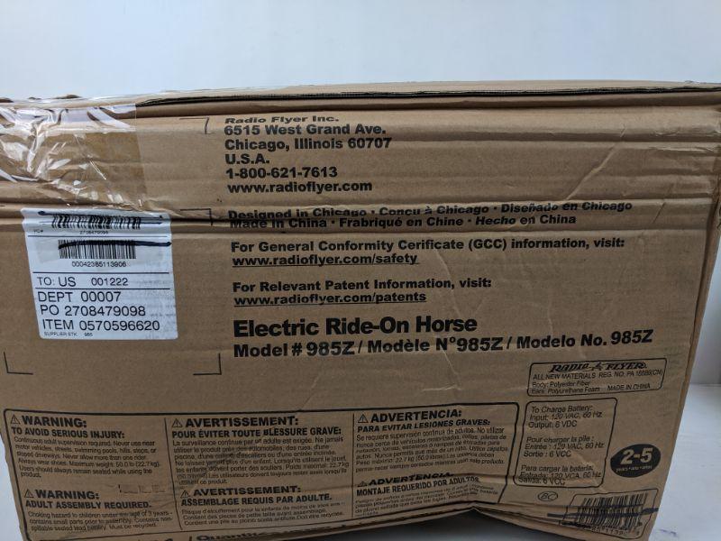 Radio Flyer Electric 6v Ride-On Horse, Easy Push Button on Handle - New