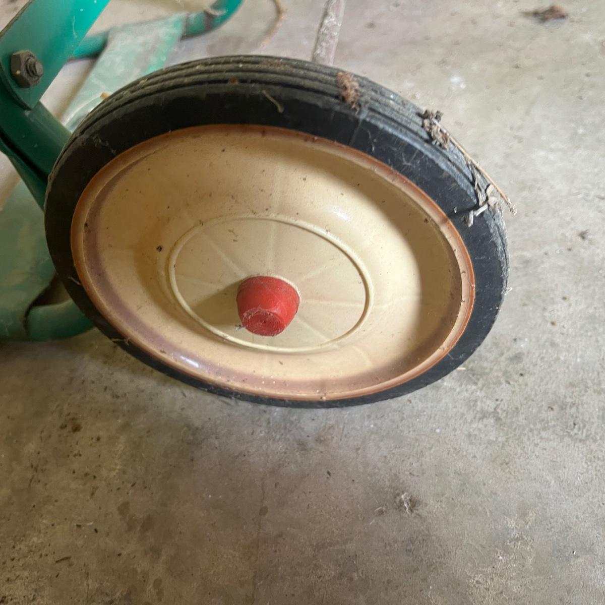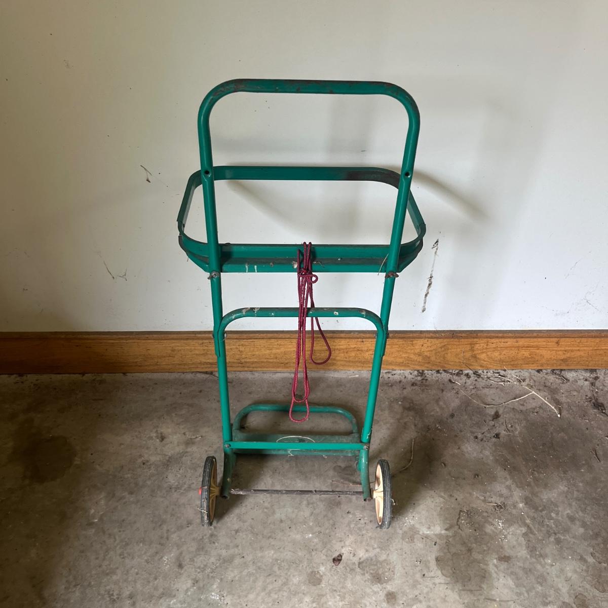 Lot includes a Radio brand metal leaf bag cart with non pneumatic tires. Cart measures 19” x 16” x 39”H.