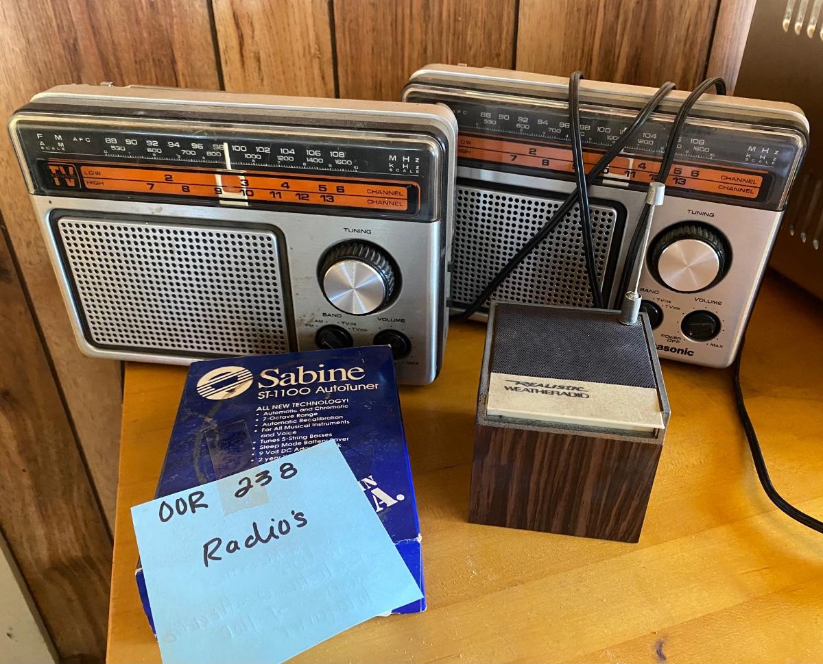 2 Panasonic radios, Realistic weather radio and Sabine ST-1100 auto tuner.