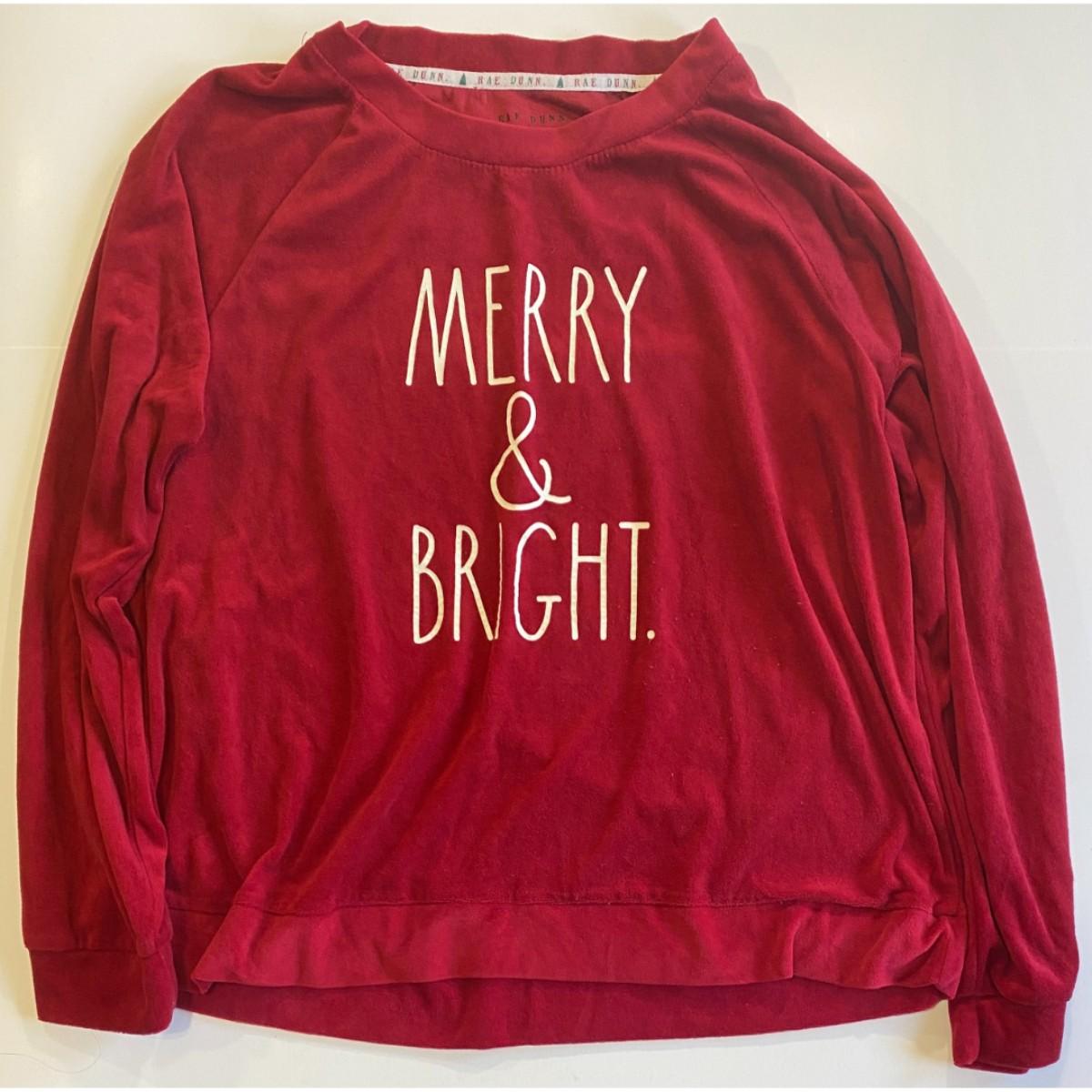 Rae Dunn Merry & Bright Red White Large Size L Polyester Spandex Top RN# 125288