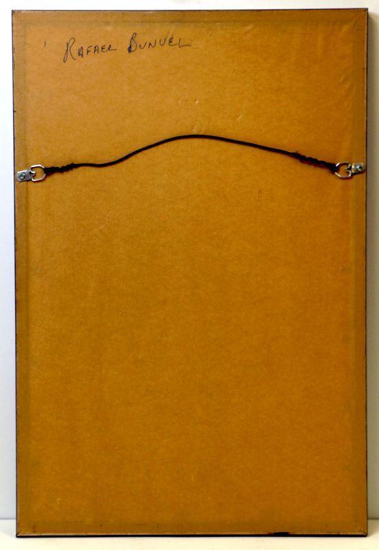 Rare Etching, Limited Edition of 16, numbered #16/20. Signed and dated by artist Rafael Bunuel - Collector's Item! Image - 8" x 14.5", Frame - 14" x 21". Front glass is cracked at the top right corner - see pictures.