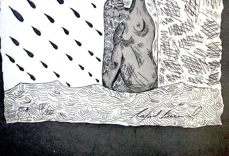 Rare Etching, Limited Edition of 3, numbered III/III, E.A. Signed by artist Rafael Bunuel - Collectors Item! Image - 12.5" x 15.5", Frame - 18" x 21"
