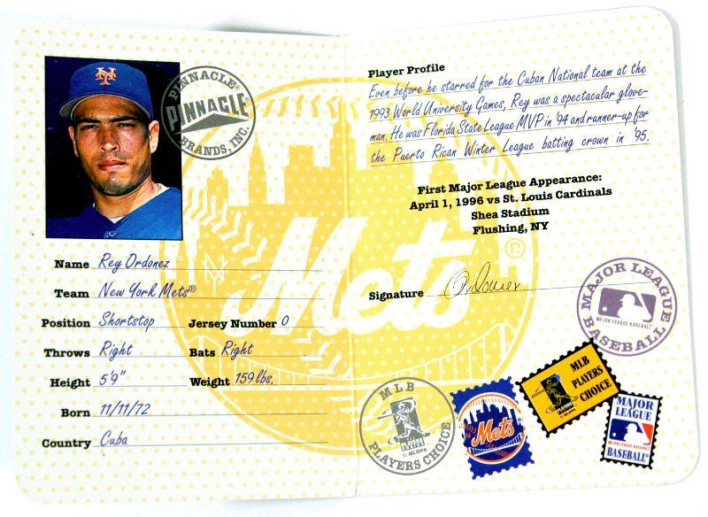 Set of 2 RARE 1997 Pinnacle Baseball Cards Inserts - Passport To The Majors, these are fold out baseball cards designed as passports - both in excellent condition - High Grade - Limited Edition Inserts - Collector's Item!