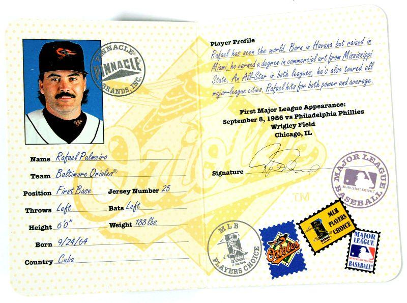 RAFAEL PALMEIRO REY ORDONEZ Passport to the Majors #19 #20 Baseball Cards Inserts 1997 Pinnacle