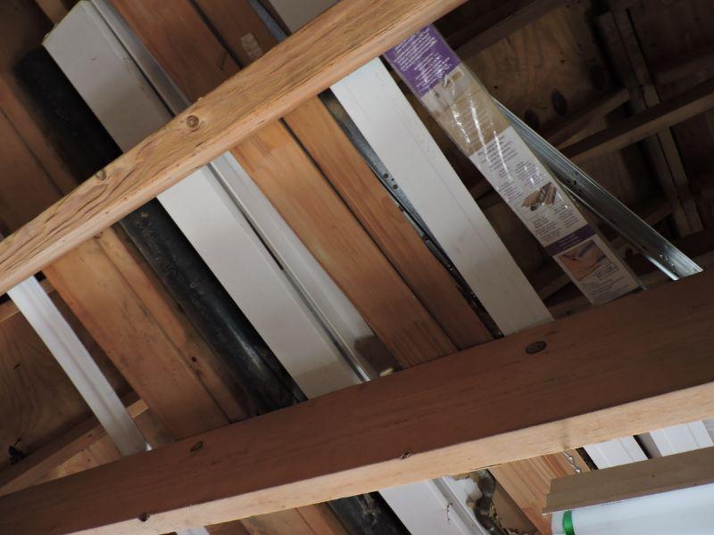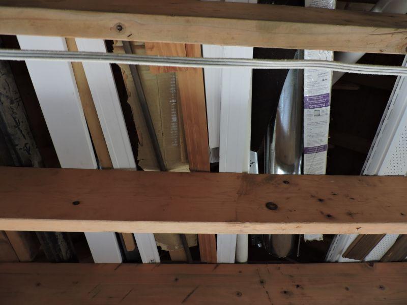 All of the items on the top shelf are yours! Make sure that you bring a ladder to collect this lot. I have not gone through anything up there. All I know is what is in the pictures. Wood, trim, hose, pvc, molding, and I am unsure what that metal thing is! Look through all photos before bidding. Please read Terms and Conditions before placing a bid. Pick up is Friday, October 25th between 4 and 7, and Saturday, October 26th between 9 and 1. Please bring boxes, tools, and muscle to help move your items. Props included in photos are not included in listing. All measurements are approximate.