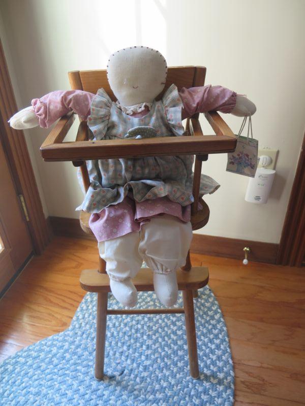 Rag doll with antique doll high chair. **Please read Terms and Conditions before placing a bid. Pick up is Sunday, September 15, 2019 from 11am to 4pm and Tuesday, September 17 from 4pm-7pm in Sicklerville. All sales are final. All sales are as is, where is. Please review all photos. Any props included in photos are not included in listing. All measurements are approximate.