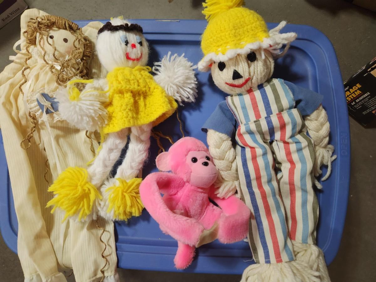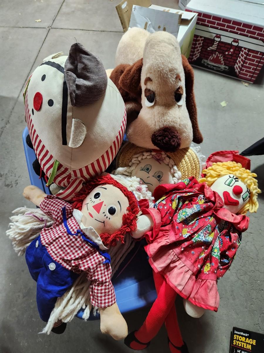 Bin of rag dolls