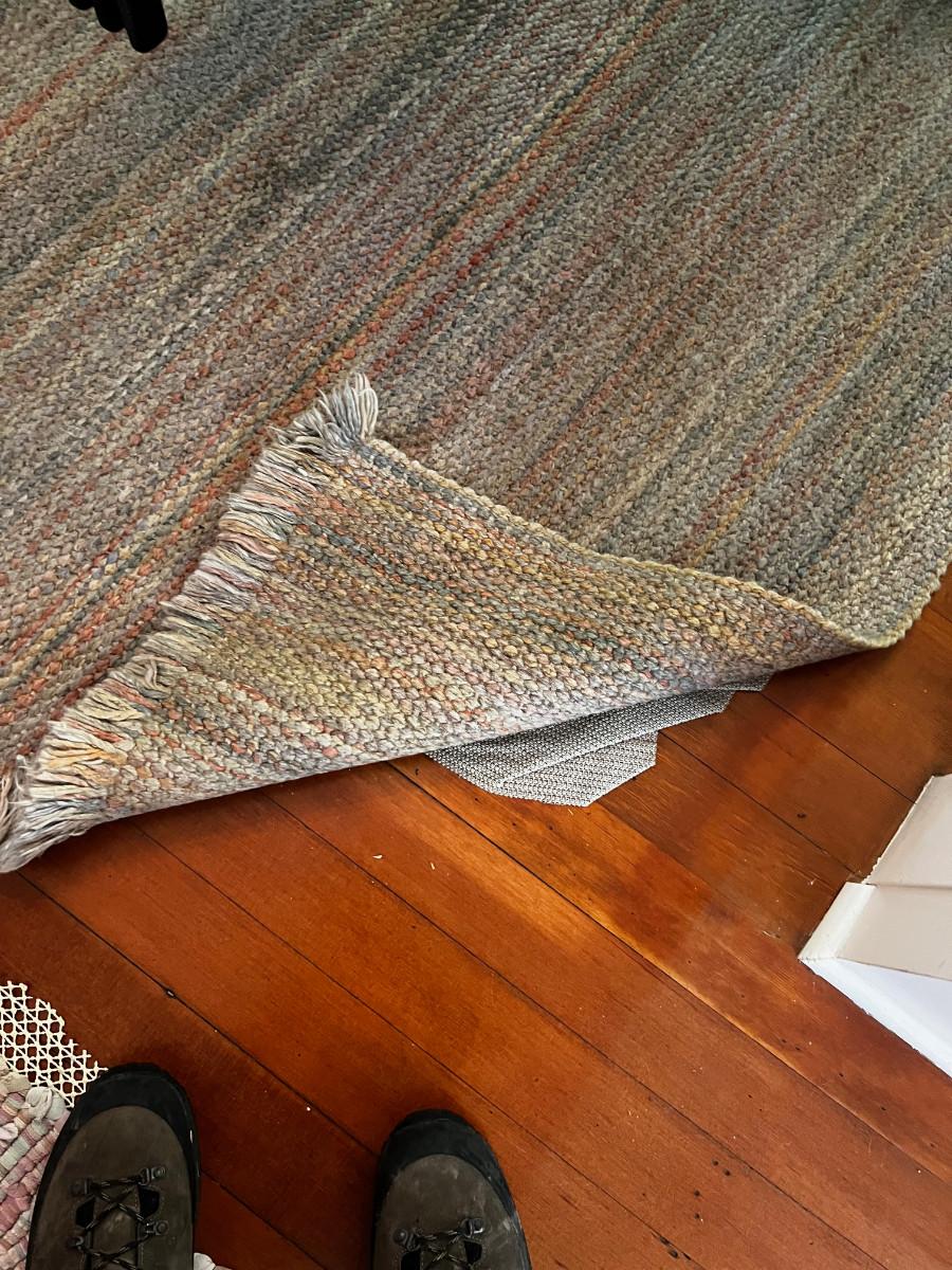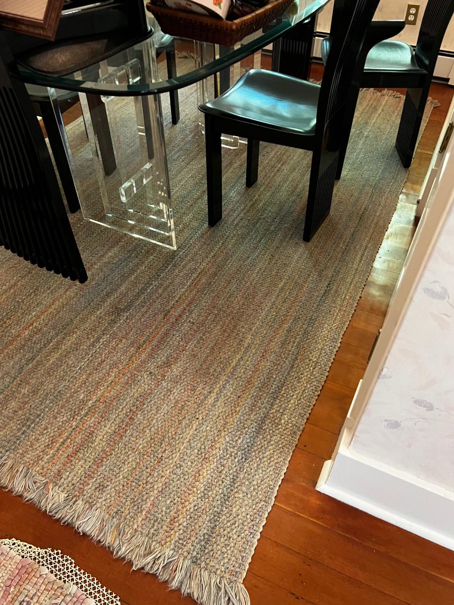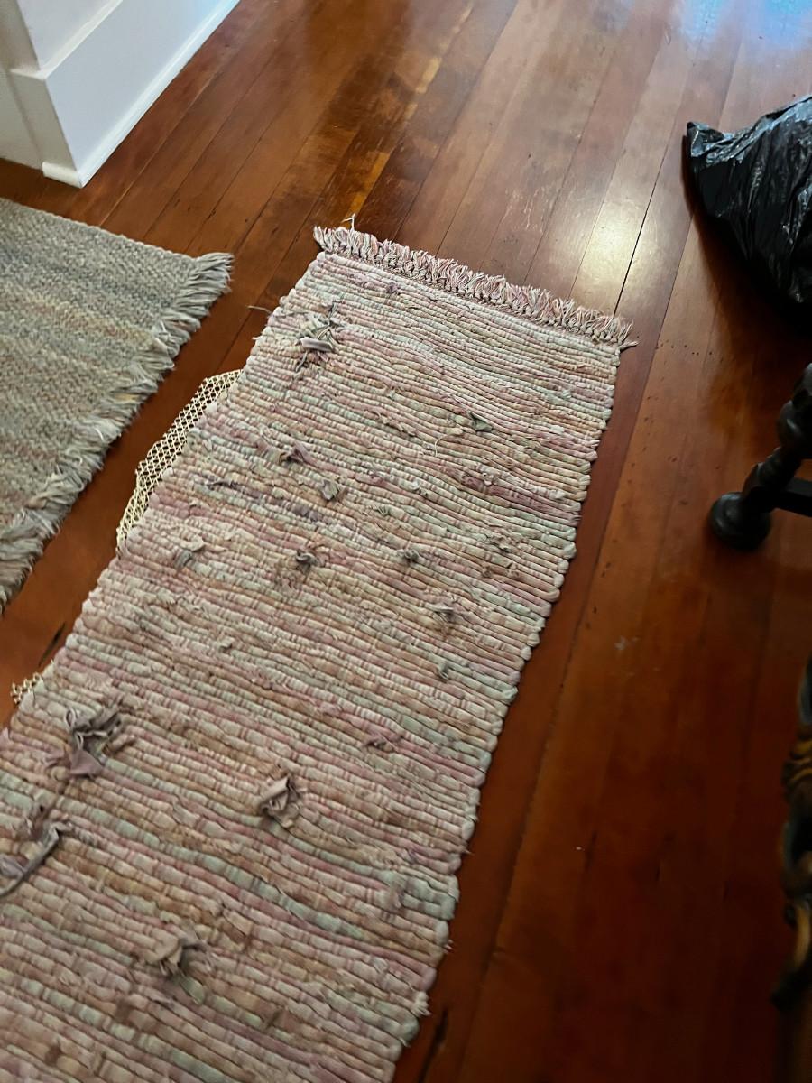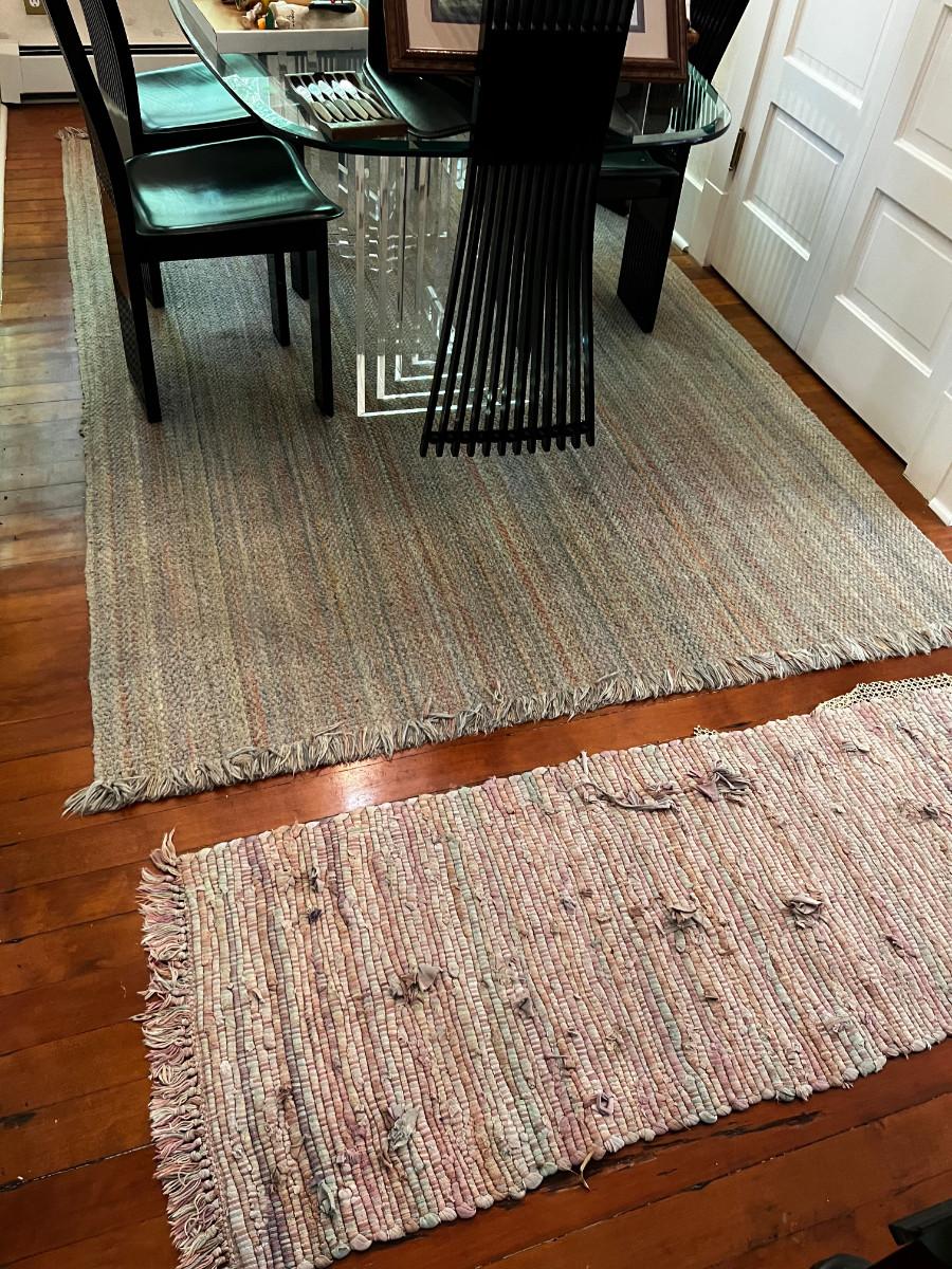 USED Good Condition. 112" X 71" light Blue Gray Tones & Smaller runner 8' X 24" Pink tones