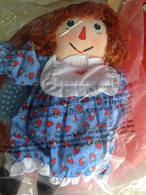 Raggedy Ann doll set comes with a hairbrush,comb and frame, item is old stock , item is unopened in original packaging, collectable