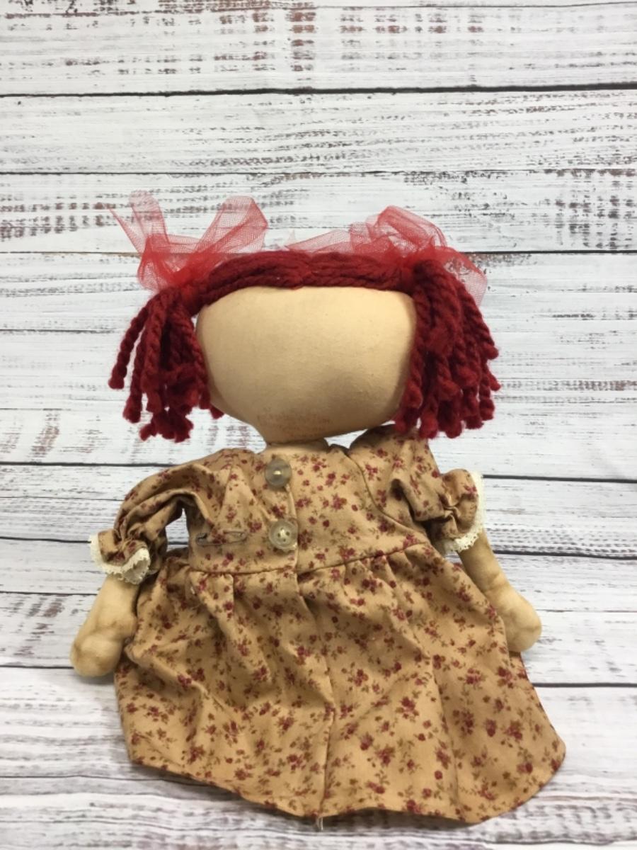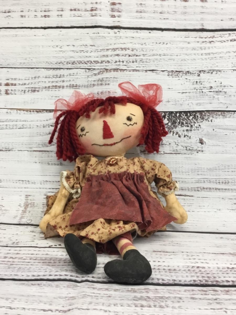 Doll is in good condition. Arms are a bit discolored. The doll is approximately 9” tall.